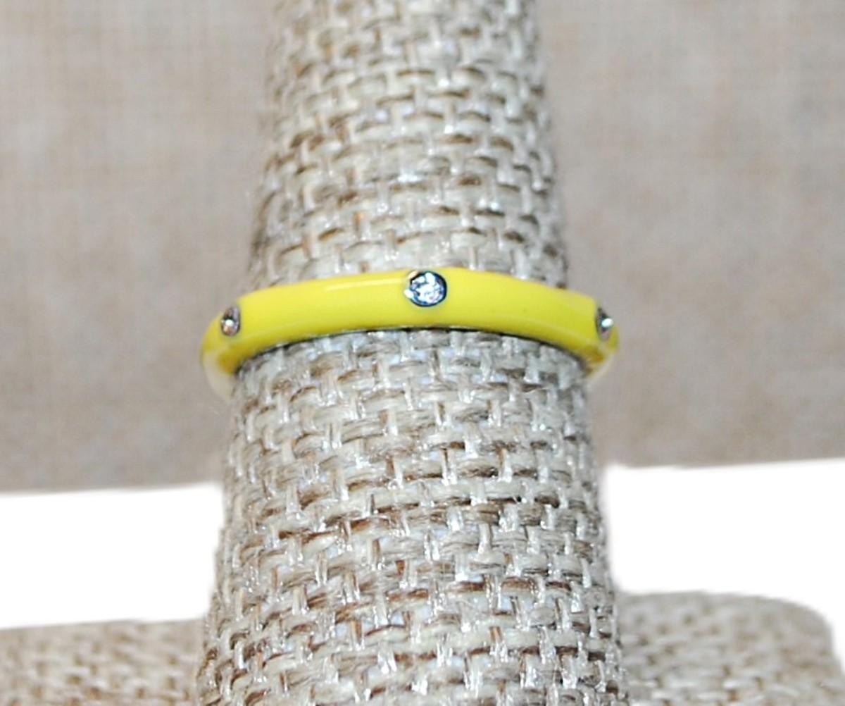 Size 8 Delicate YELLOW Ring with 6 Accent Clear Stones on a Silver Tone Band (2.1g) - STACK ALL COLORS for a REAL IMPACT