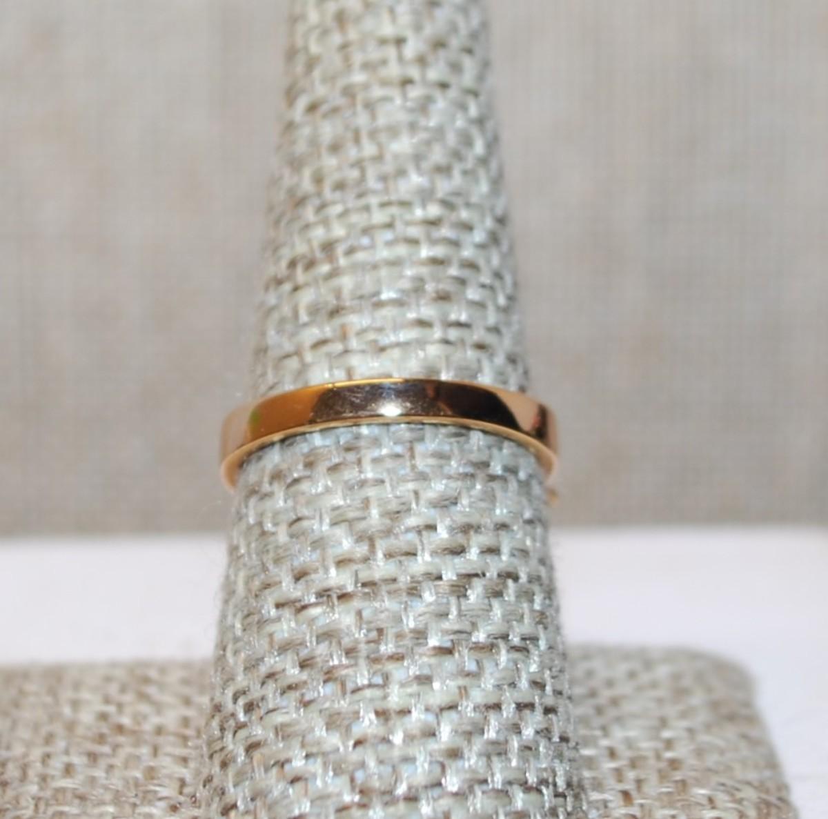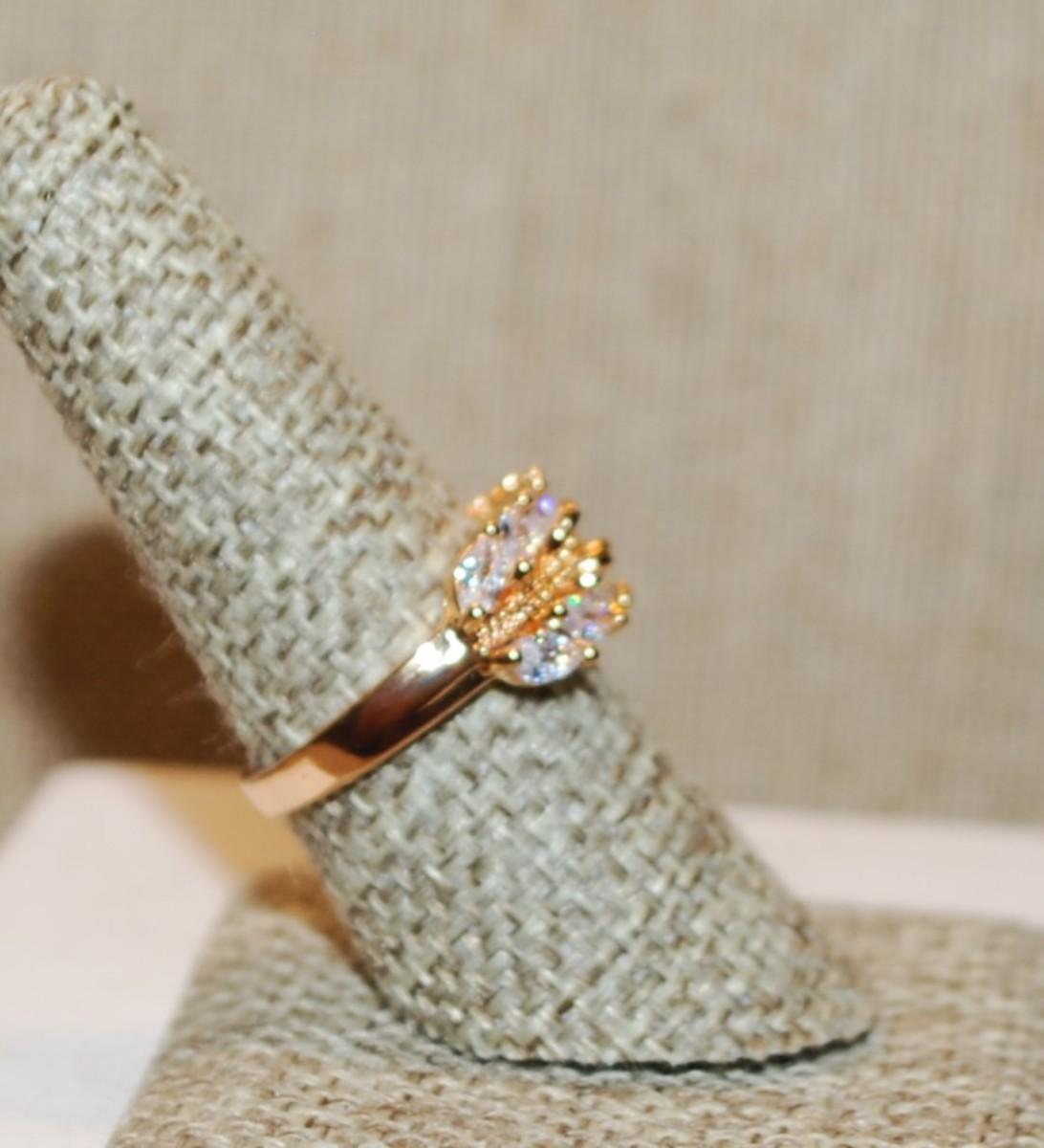 Size 8 Double Rows Clear Angled Marquise Cut Stones Ring with a Rosy Gold Center Line on a Gold Tone Band (3.7g)