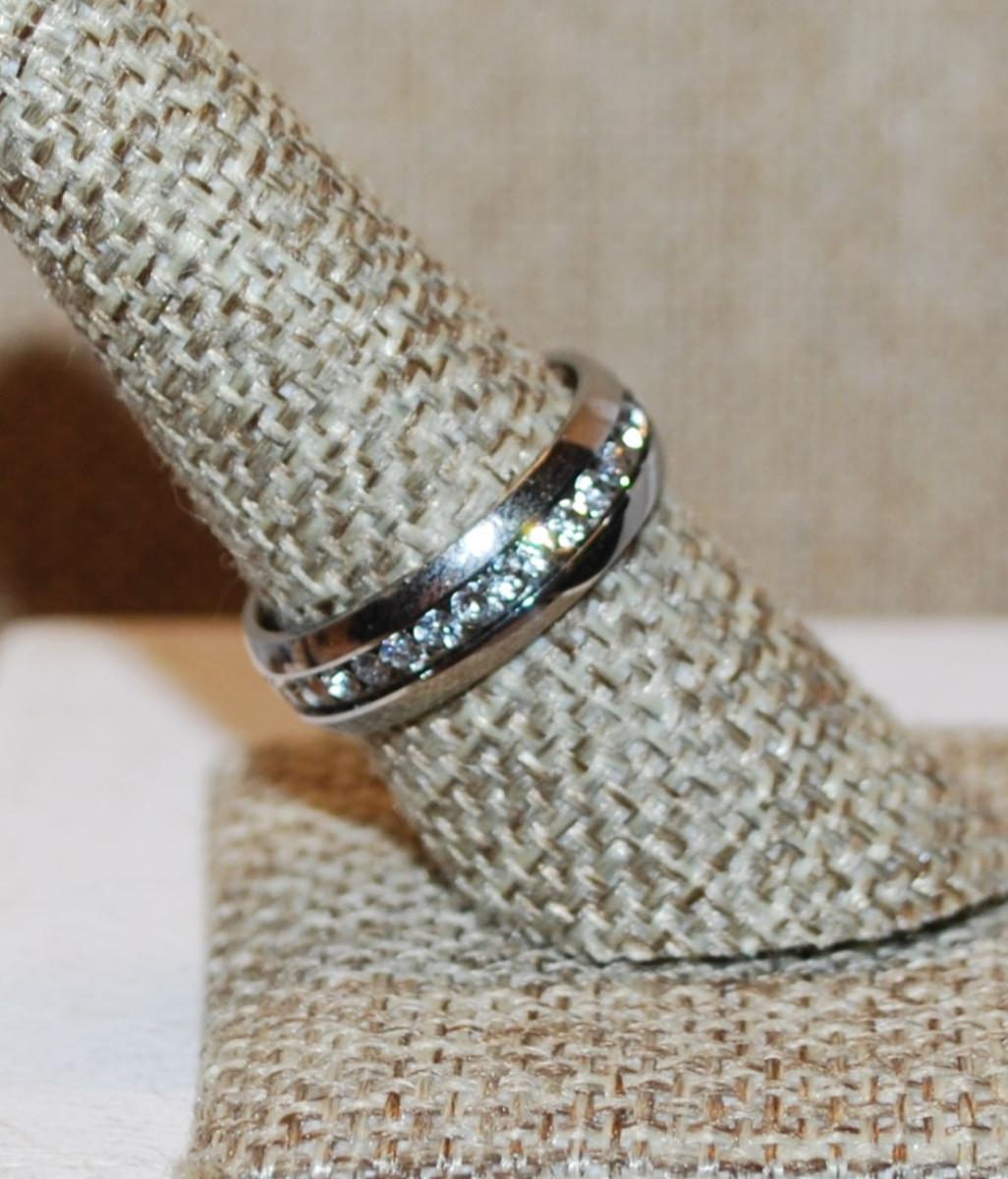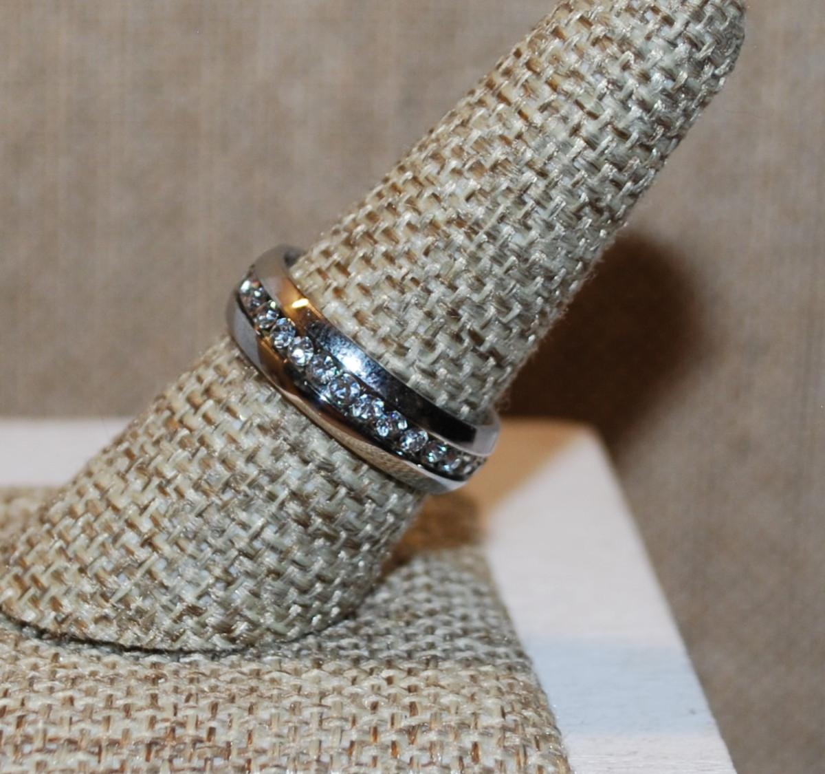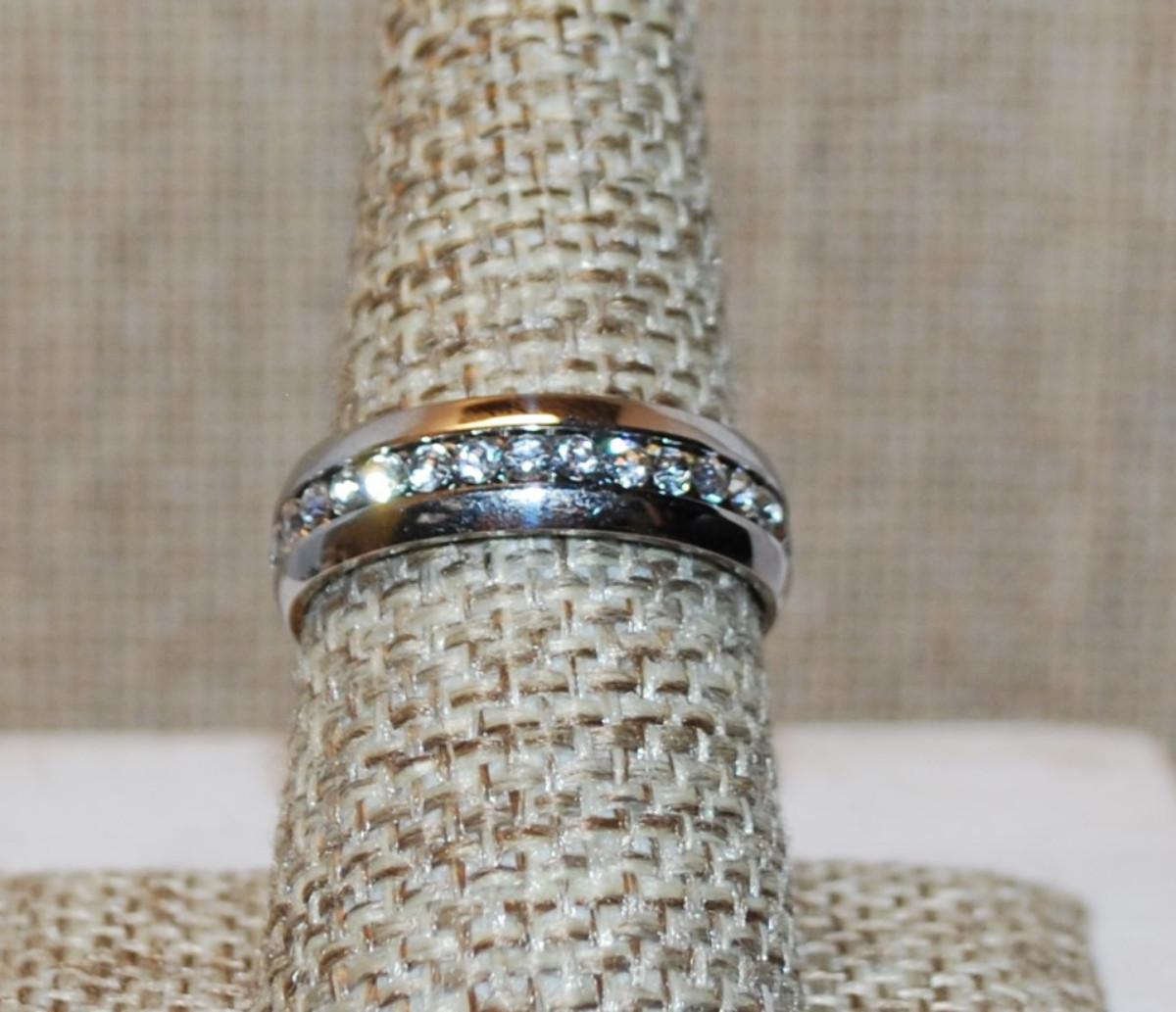 Size 8 Eternity Style Ring with Full Clear Stones Surround on a Silver Tone Band (3.6g)