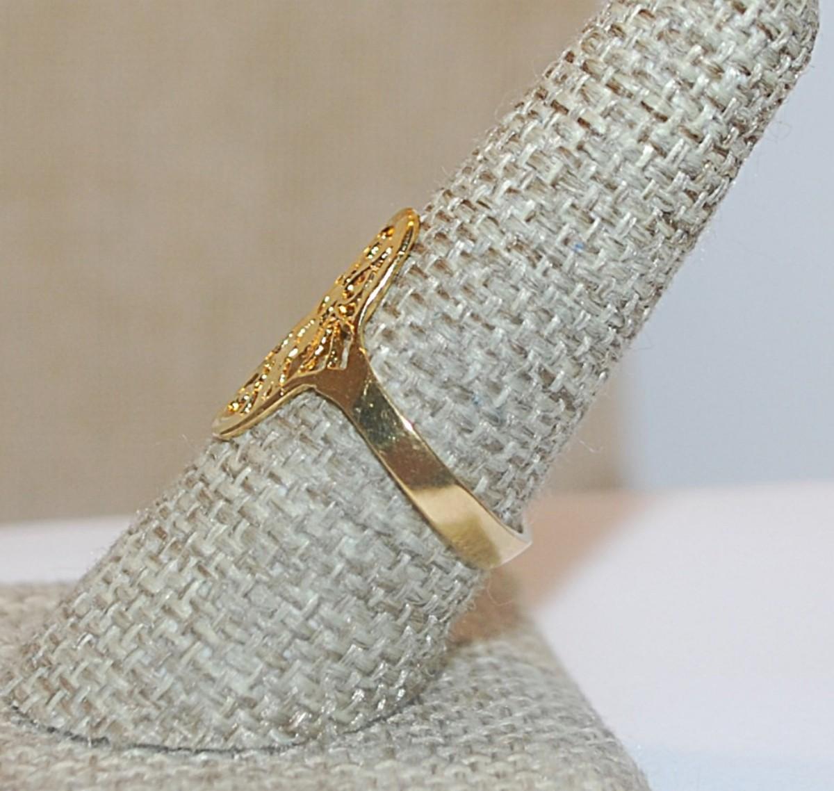 Size 8½ Gold Colored Filigree Style Oval RING on a Gold Tone Band (2.3g)