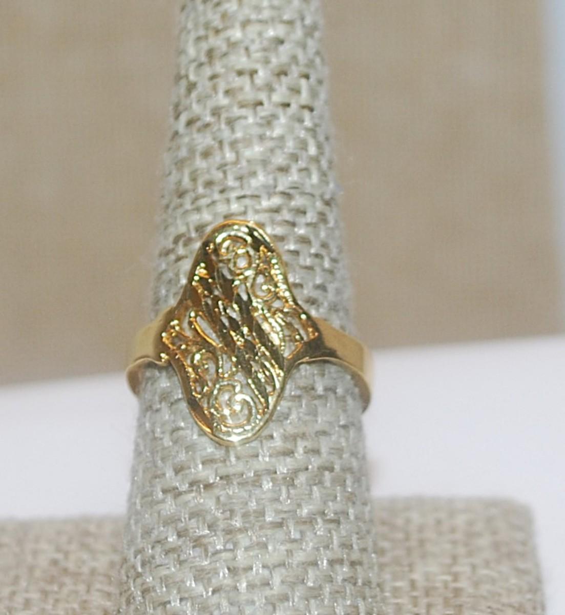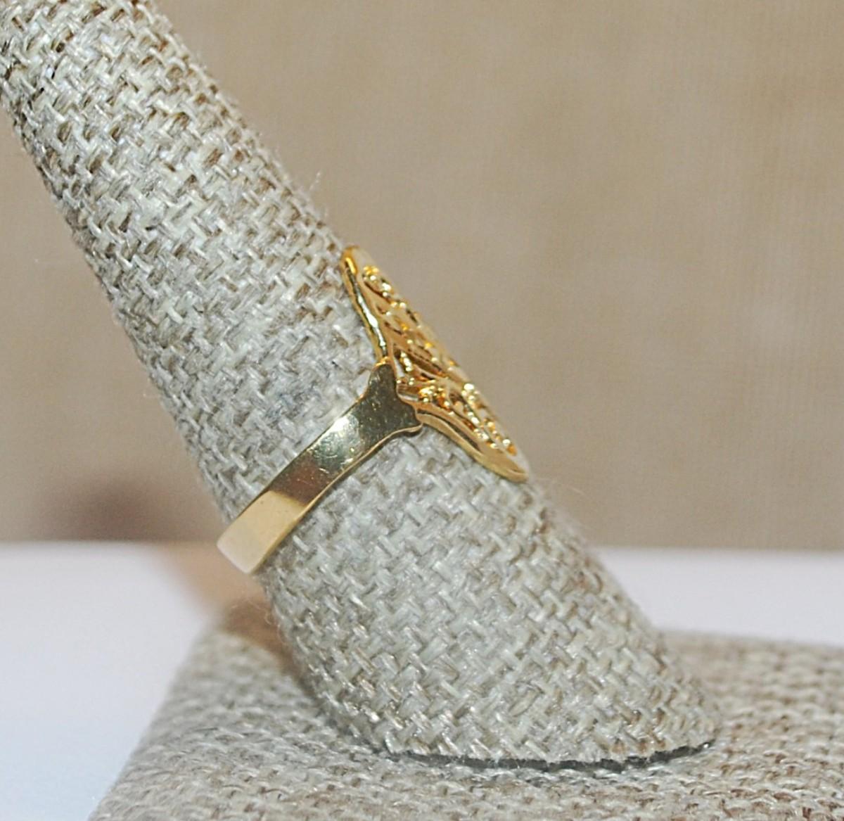 Size 8½ Gold Colored Filigree Style Oval RING on a Gold Tone Band (2.3g)
