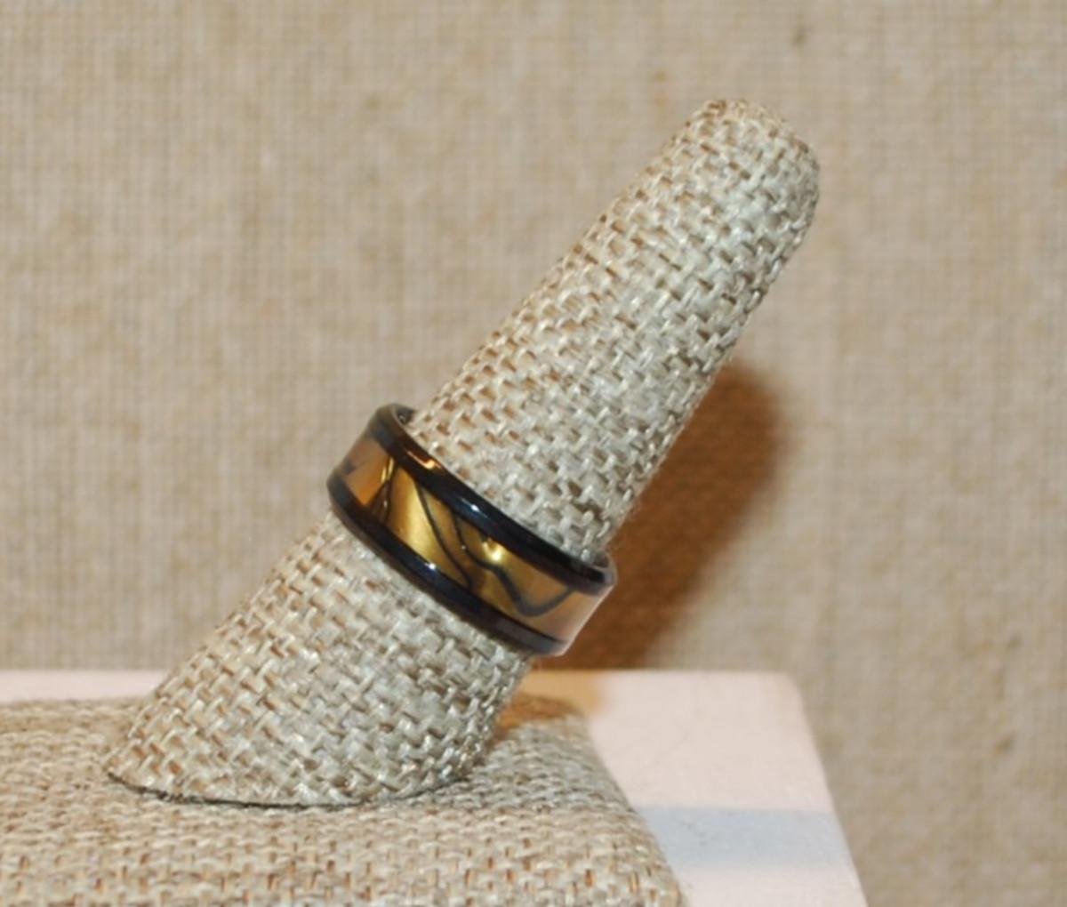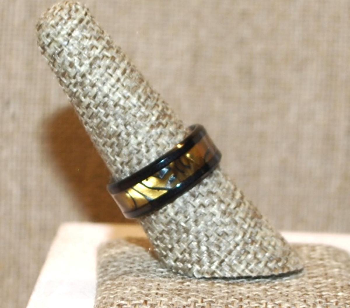 Size 8 Gold Design Center Inlay Enamel Infinity Ring on an All Black Band (4.6g)