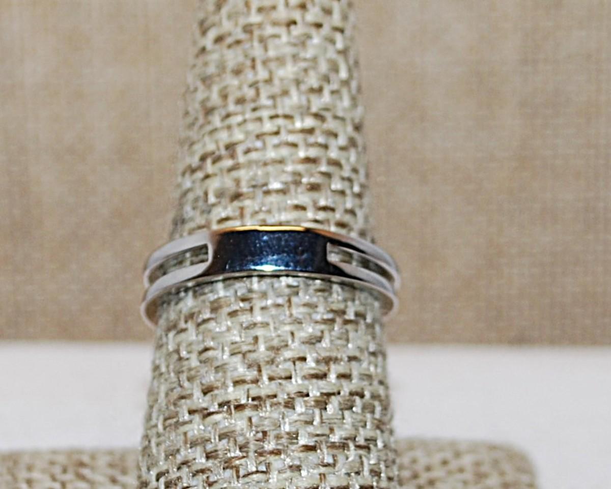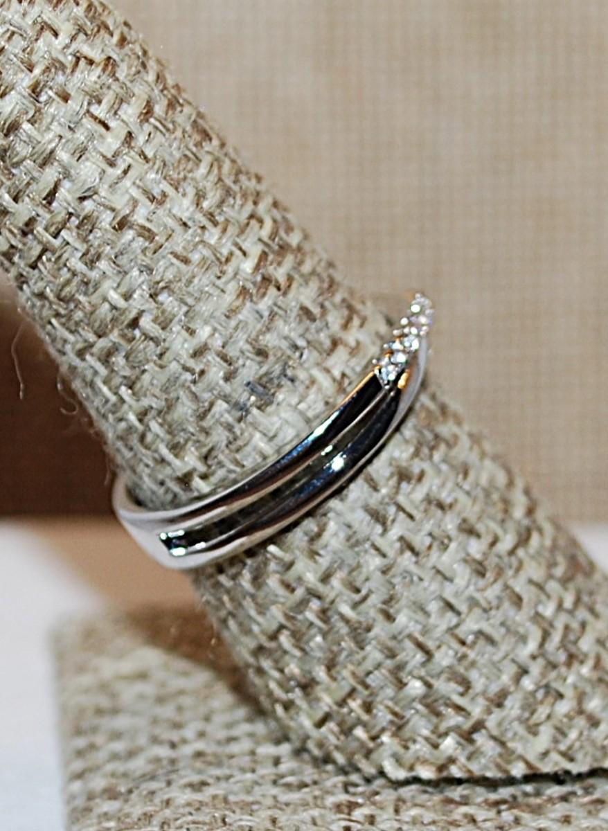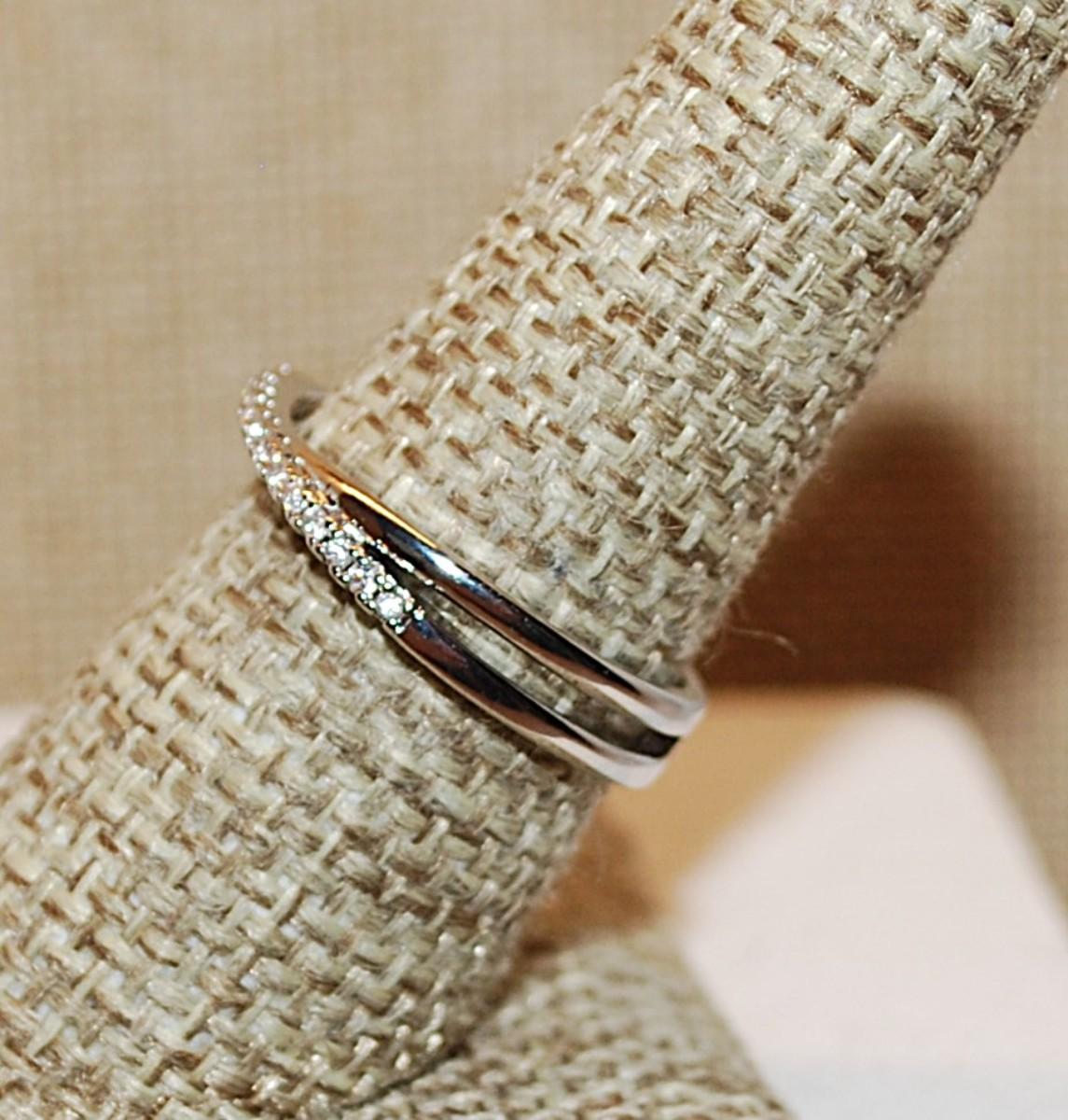Size 8 Half Infinity Criss-Cross Ring with 2 Rows of Small Stone Accents on a Silver Tone Band (2.4g)