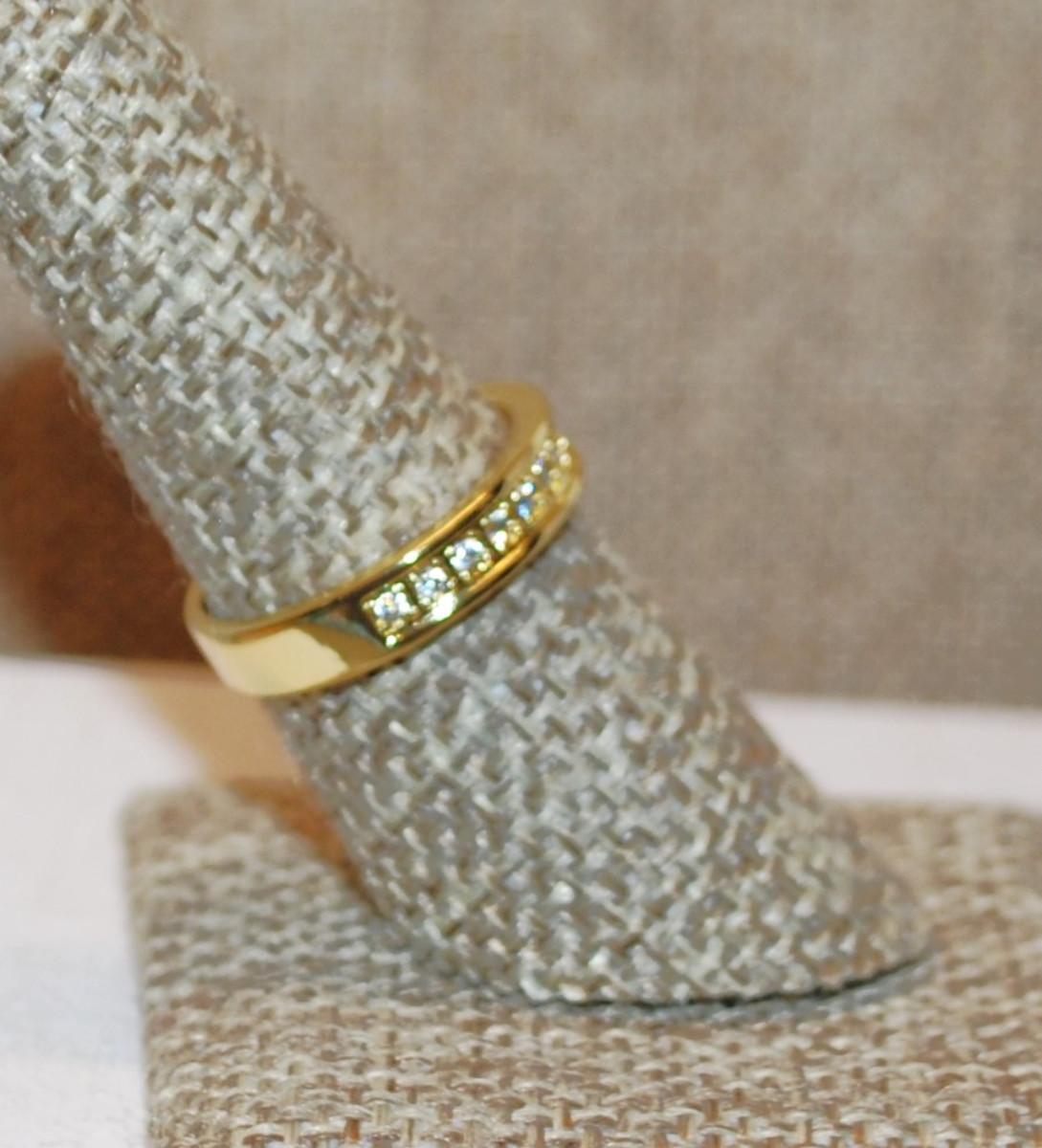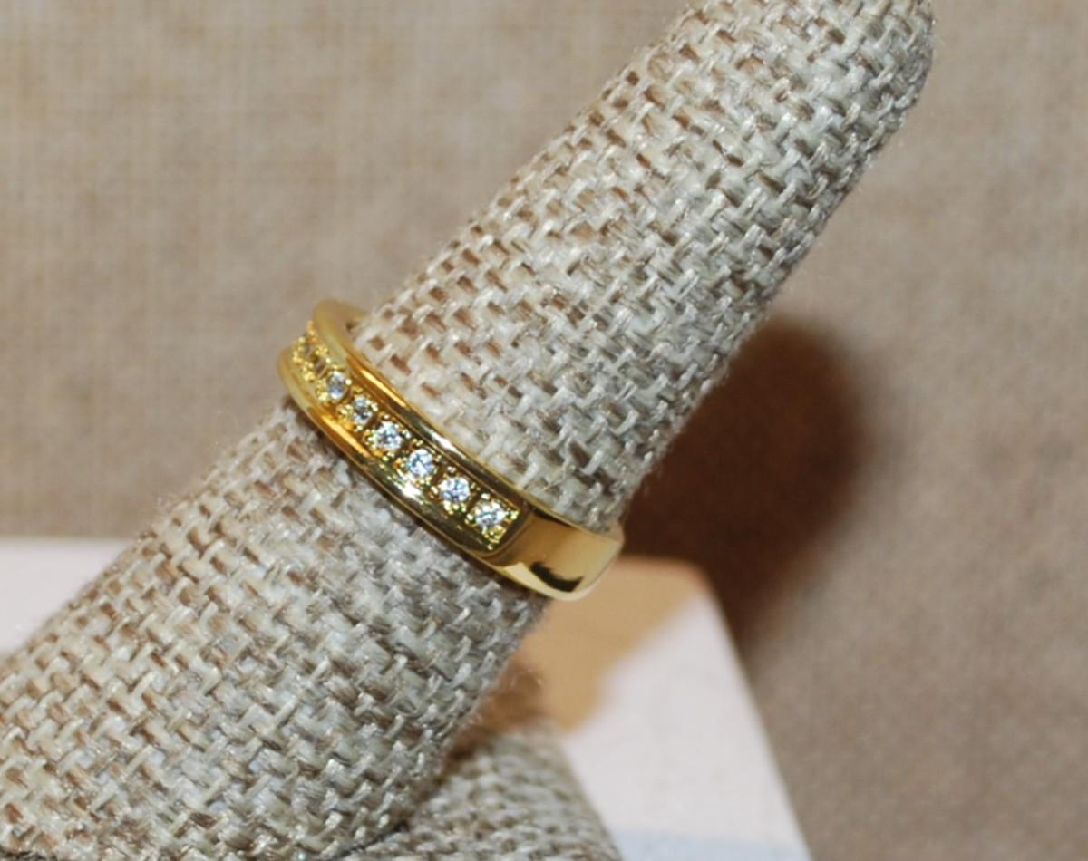 Size 8 Half Infinity Style Ring with Center Row of Clear Stones on a Gold Tone Band (3.6g)