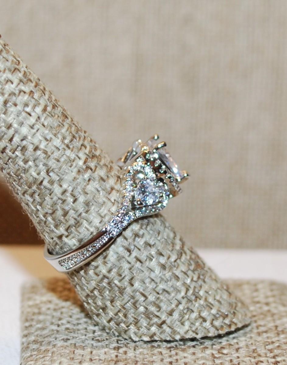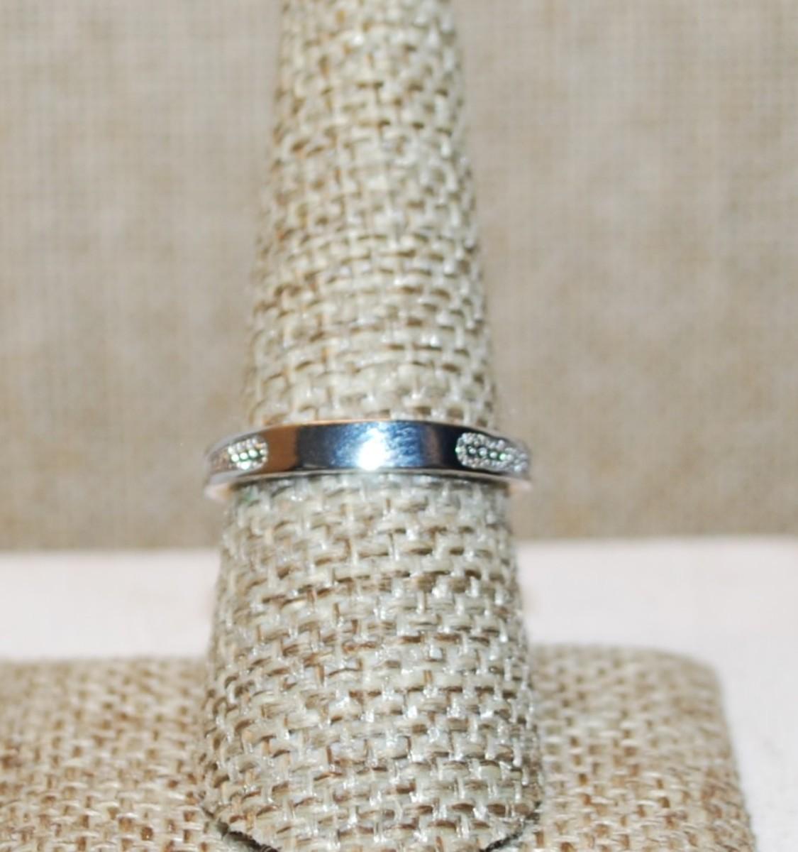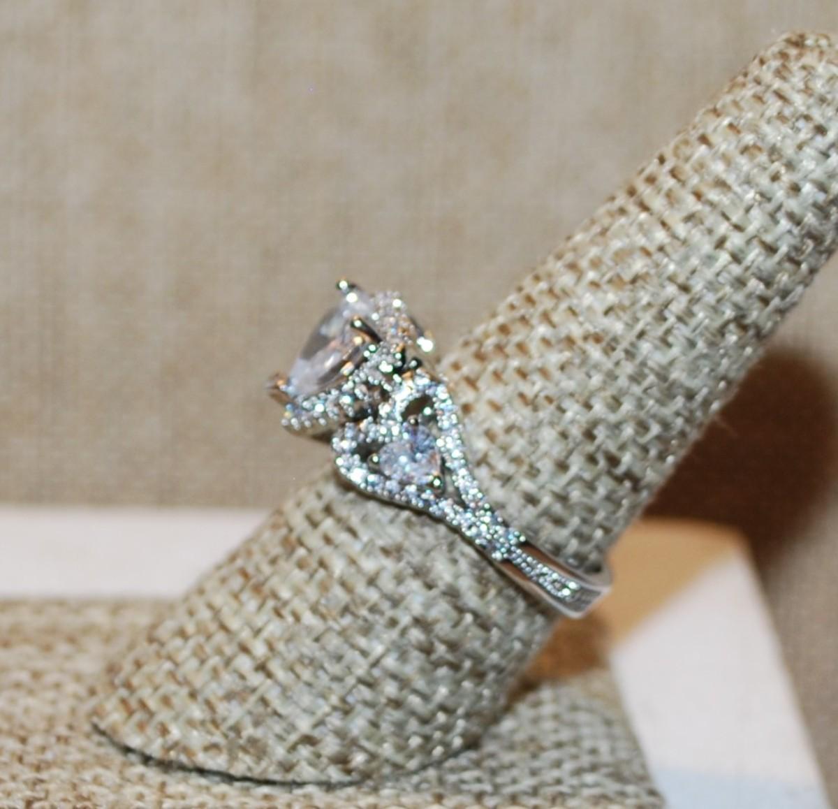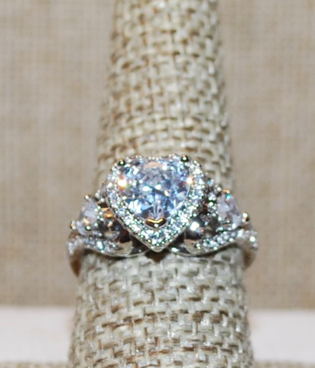 Size 8½ Heart Shaped Wedding/Engagement Setting Ring with Surrounds & Accent Stones on a Silver Tone Band (4.9g)