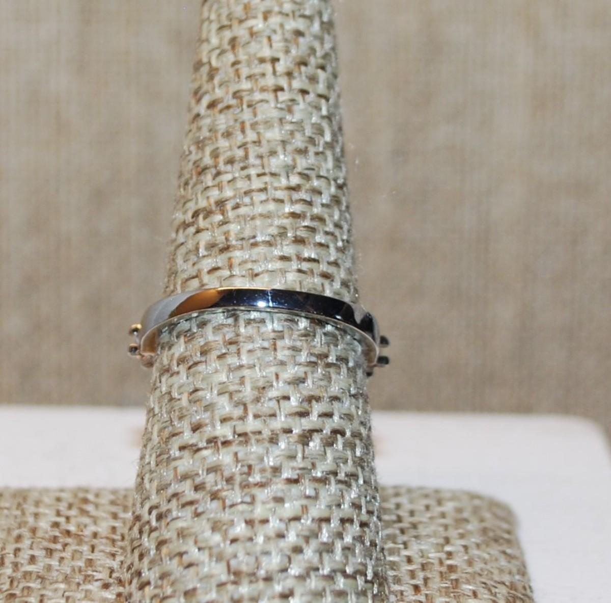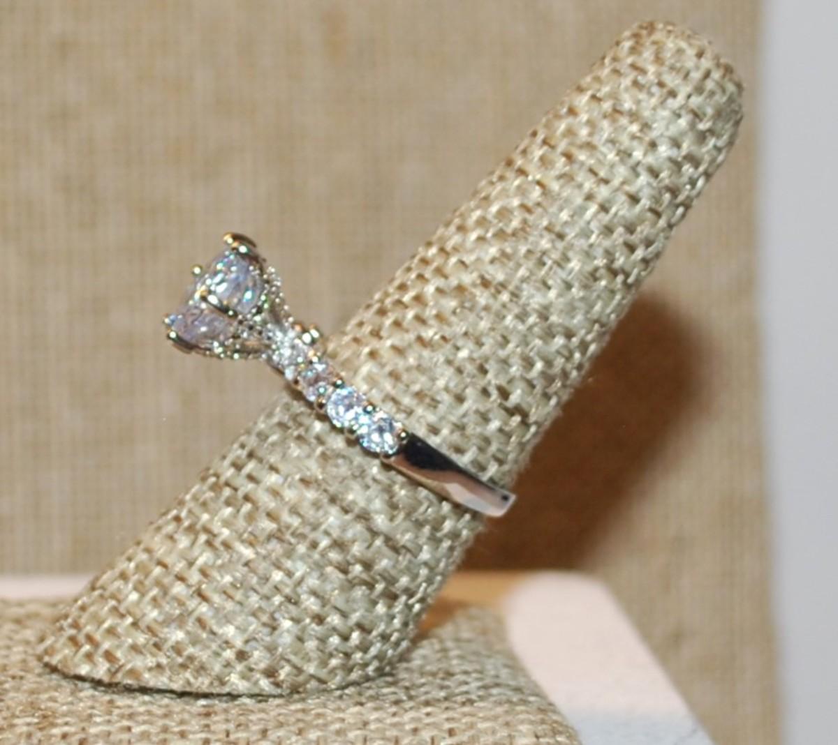 Size 8 Highrise Style Wedding/Engagement Ring with Large Main Stone & Side Accents on a Silver Tone Band (3.6g