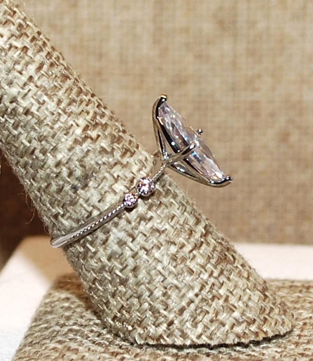 Size 8 Hi-Rise Marquise Cut Single Clear Stone & 4 Side Stone Accents on a Silver Tone Band (2.5g)