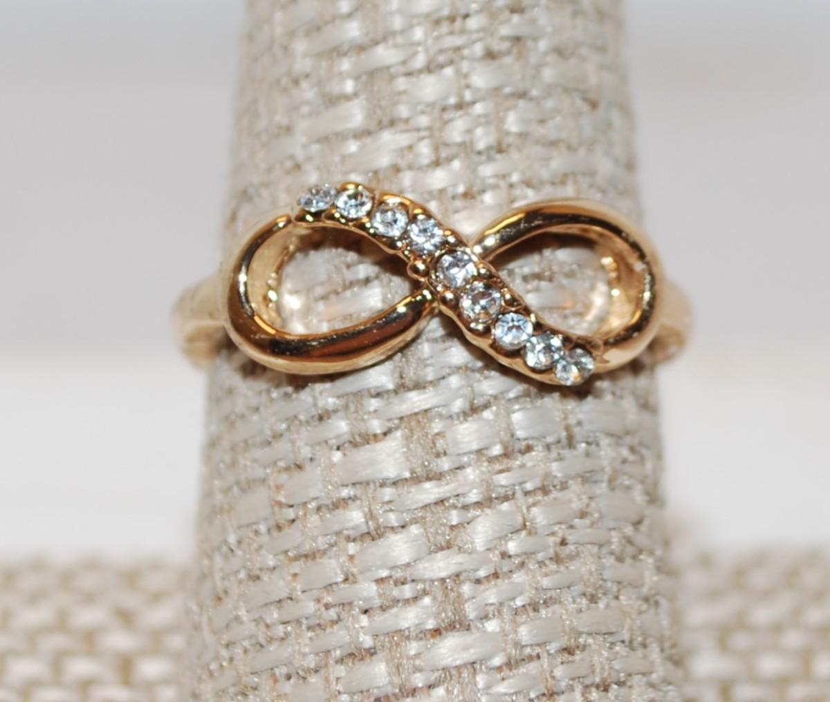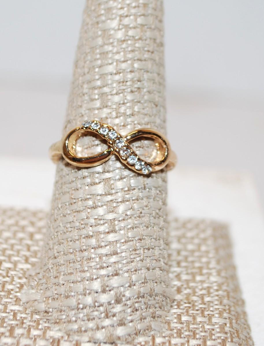 Size 8 ¾ "Infinity" Style Gold Tone Design Ring with 9 Accent Stones (2.9g)