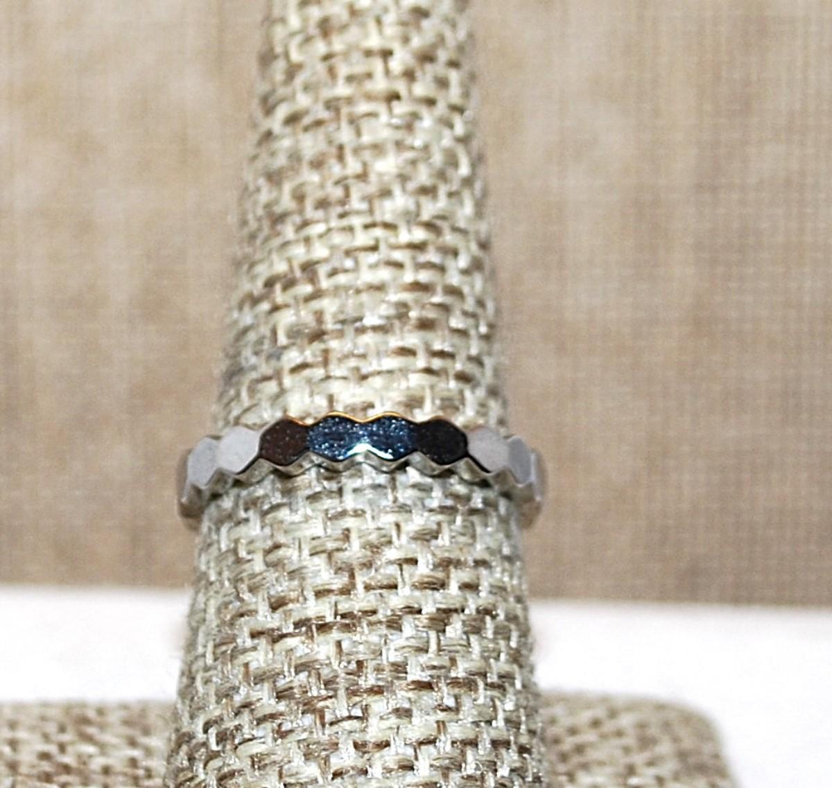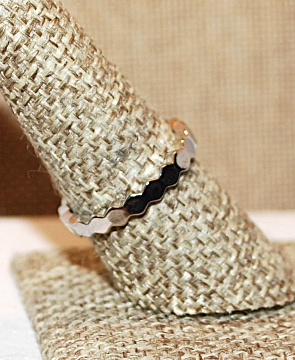 Size 8 Infinity Style No-Stones Ring with All Hex Shape Segments on a Silver Tone Band (2.7g)
