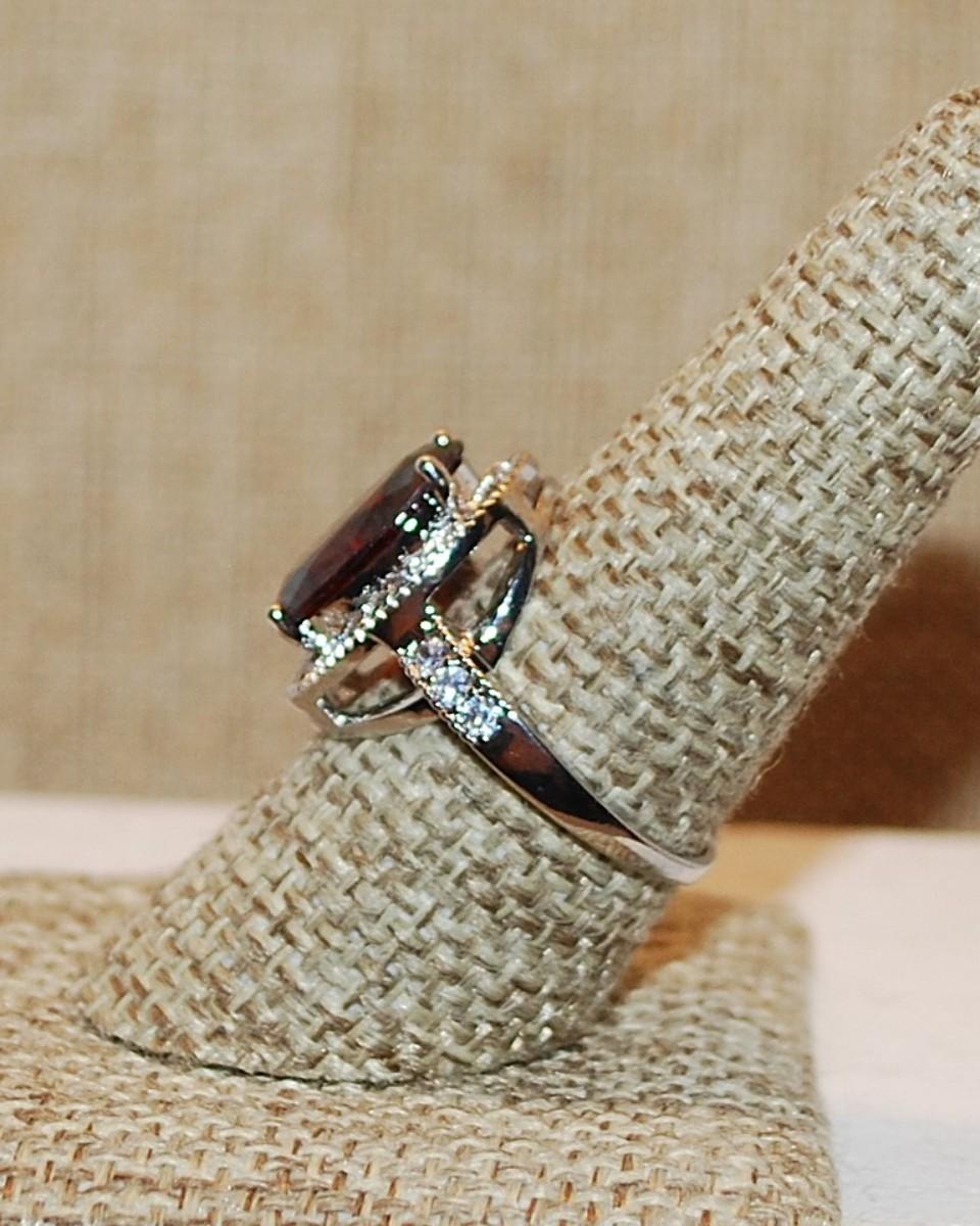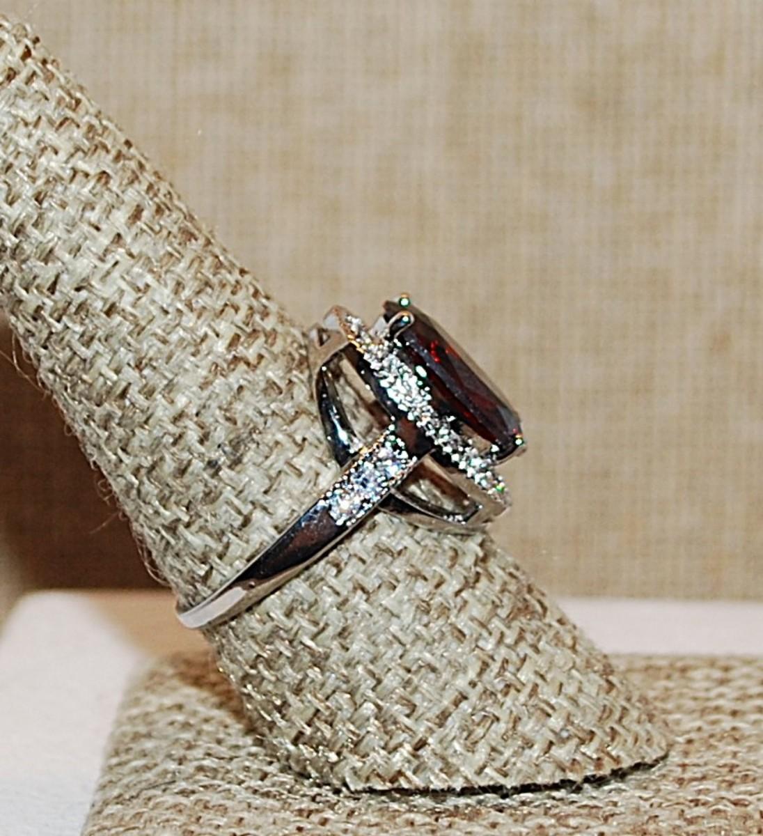 Size 8 ½ Large Cranberry RED Oval Stone Ring on Oval Ring Setting on a Silver Tone Band (5.0g)
