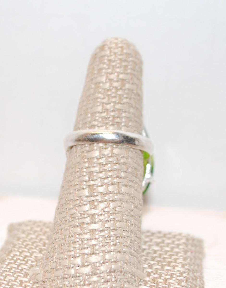 Size 8 Large Green Peridot .925 Teardrop Stone Ring (11.0g)