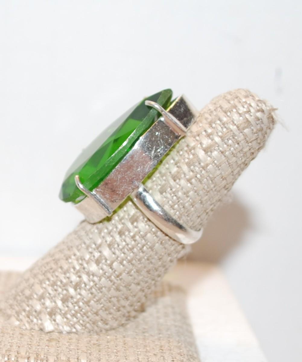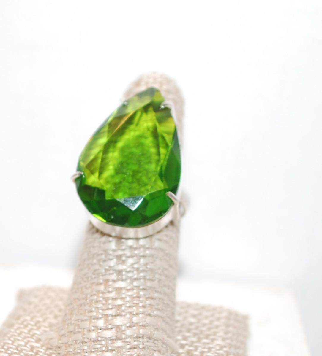 Size 8 Large Green Peridot .925 Teardrop Stone Ring (11.0g)
