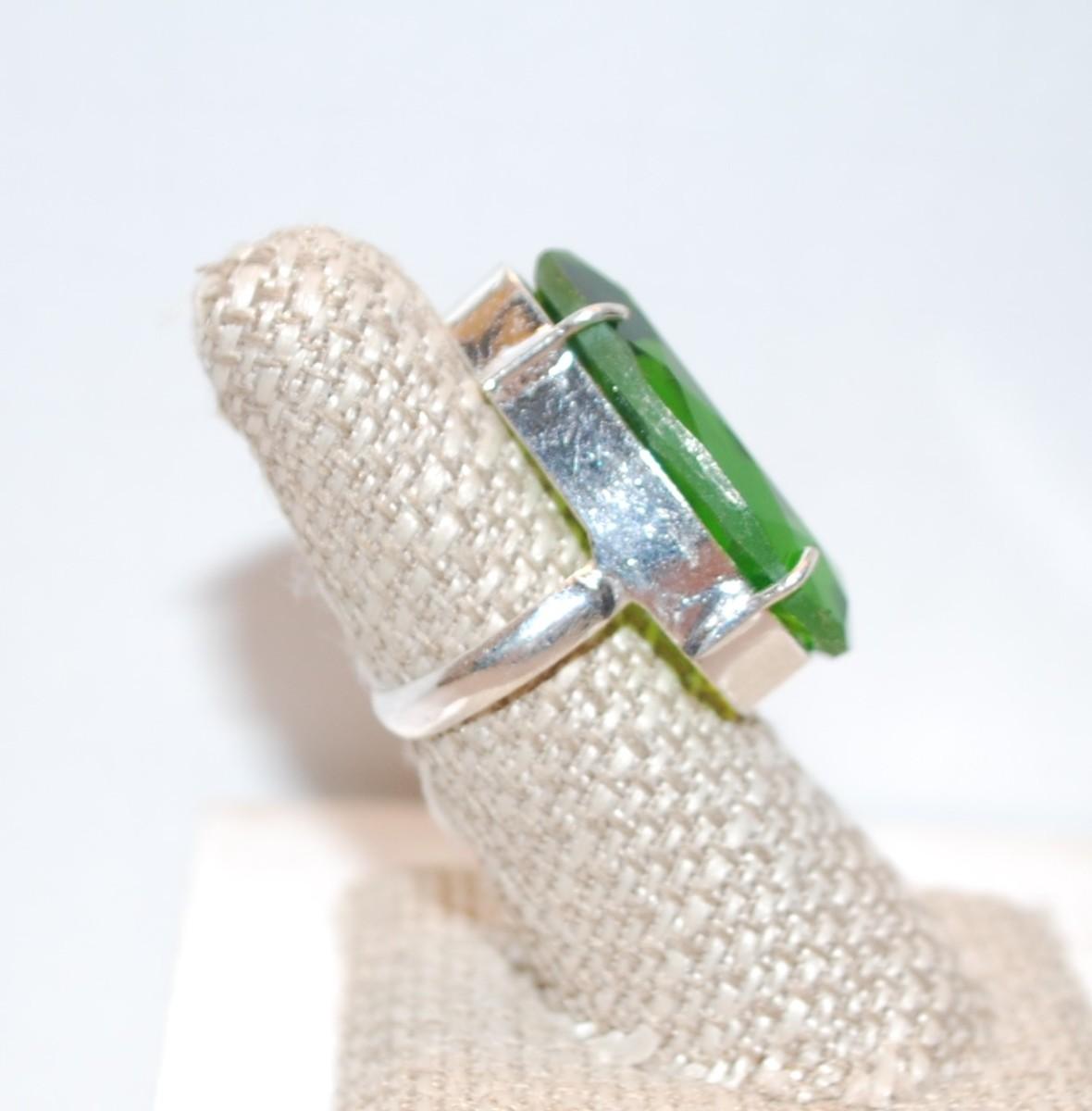 Size 8 Large Green Peridot .925 Silver Plated Teardrop Stone Ring (11.0g)