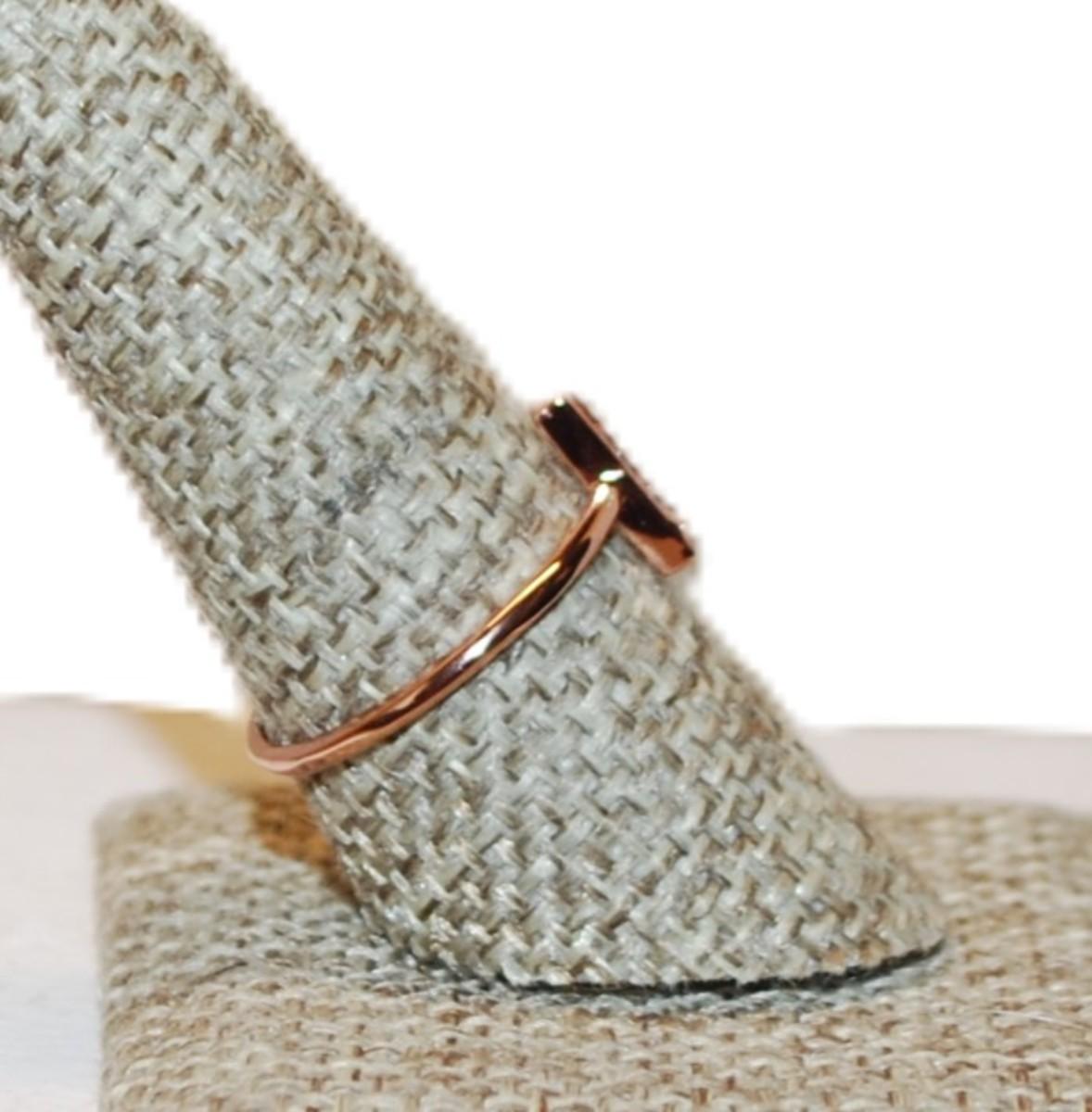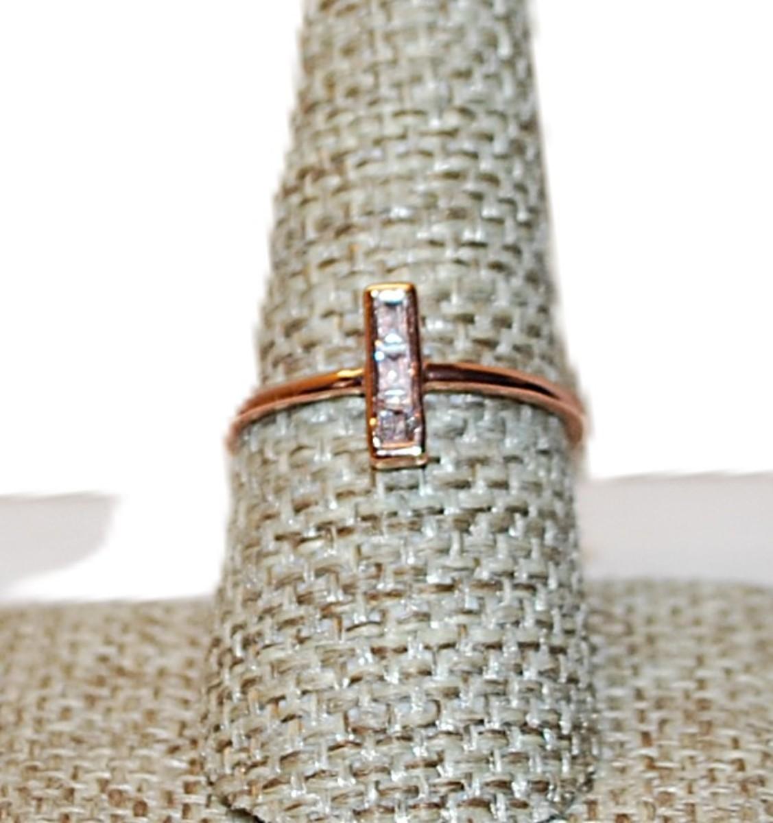 Size 8 ½ Marked .925 Vertical Rectangle Ring with 3 Clear Stones on a Silver Filled ROSE GOLD Band (1.2g)