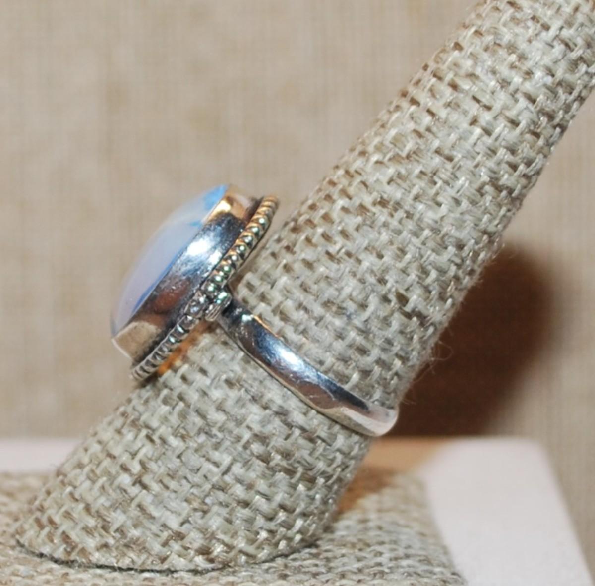 Size 8½ Marked .925 CLEAR Light Blue OPAL Style Gemstone Ring on a Silver-Plated Band (5.1g)