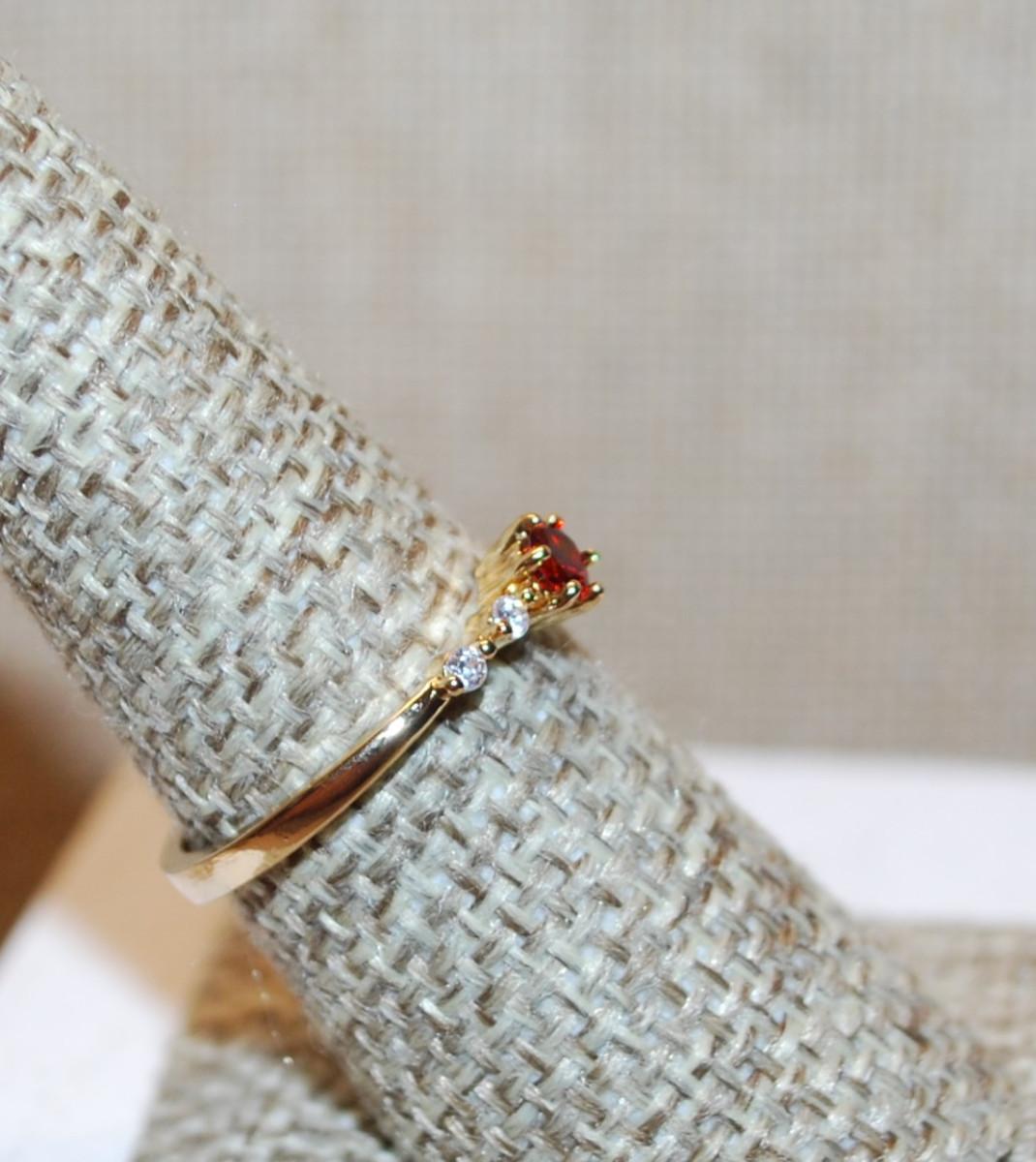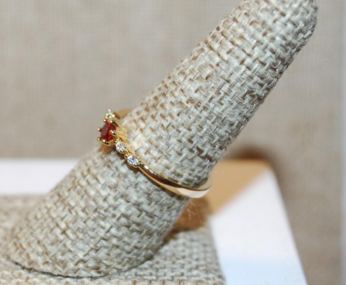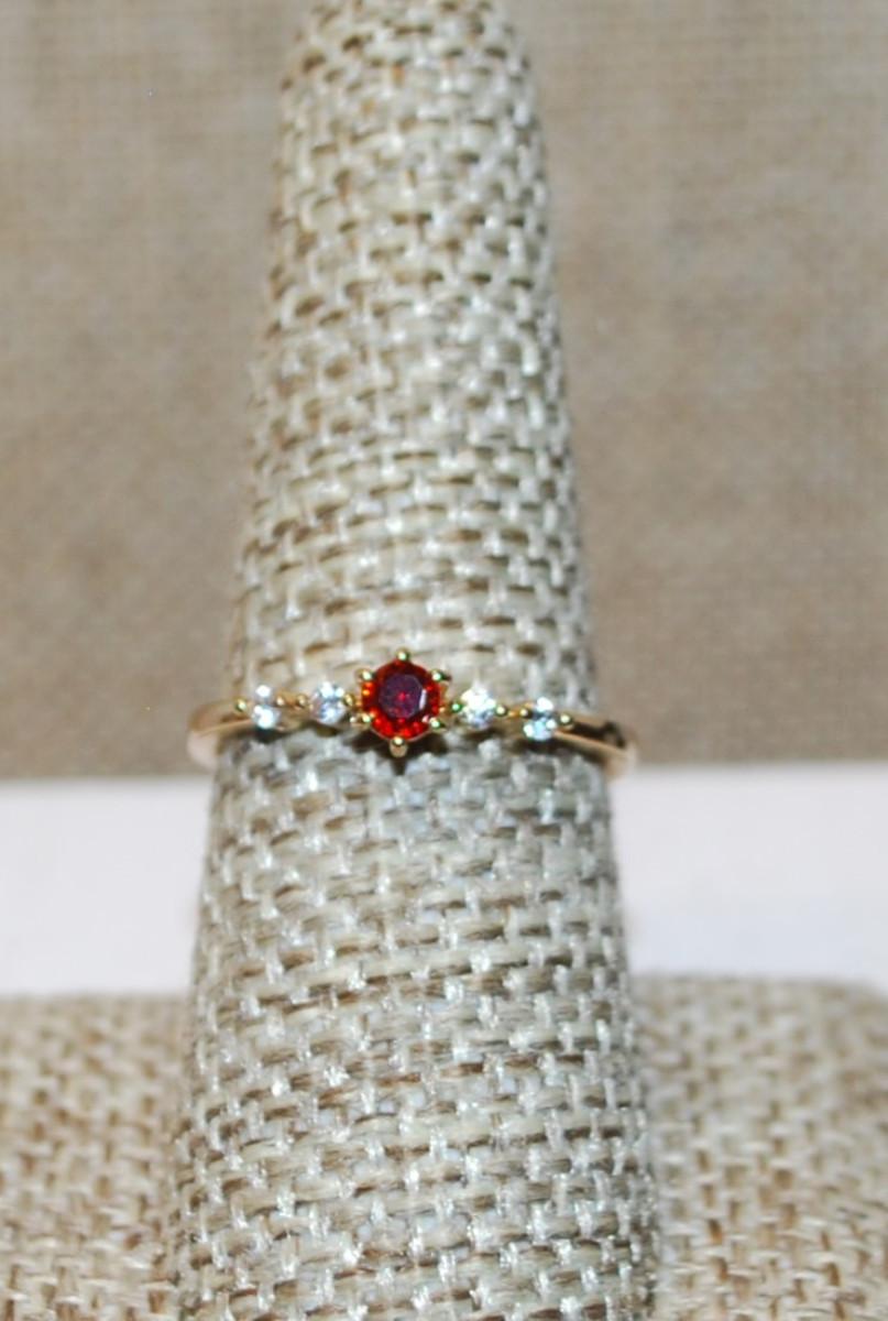 Size 8 Marked .925 Delicate Small Round Red Stone Ring with 4 Accents Stones on a Silver Filled Band (1.6g)