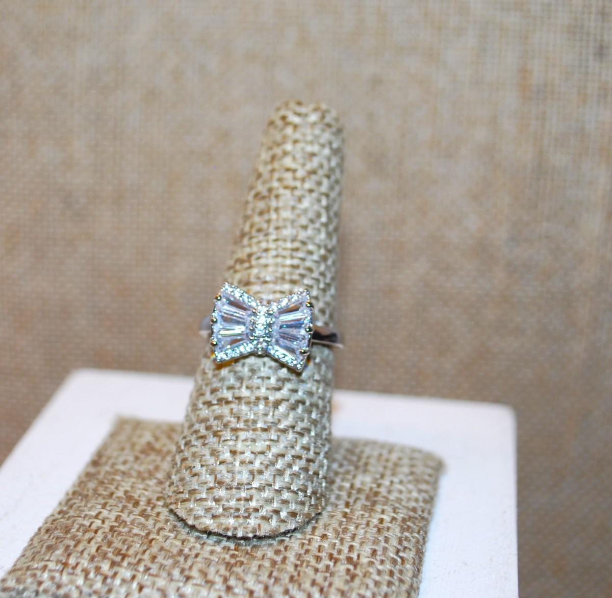 Size 8 Marked .925 Glitter "Bowtie" Styled Ring on a Silver Band (3.3g)