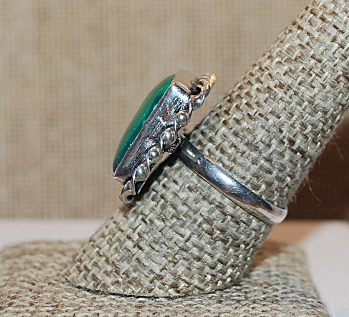Size 8½ Marked .925 GREEN Square AGATE Gemstone Ring with Full Swirl Rope Surround on a Silver-Plated Band (6.4g)