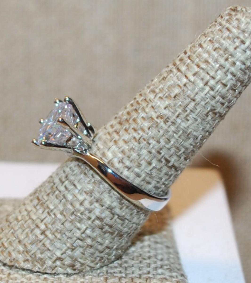 Size 8 Marked .925 Highrise 6 Prong Round Clear Stone Ring on an Overlap Silver Band (4.8g)