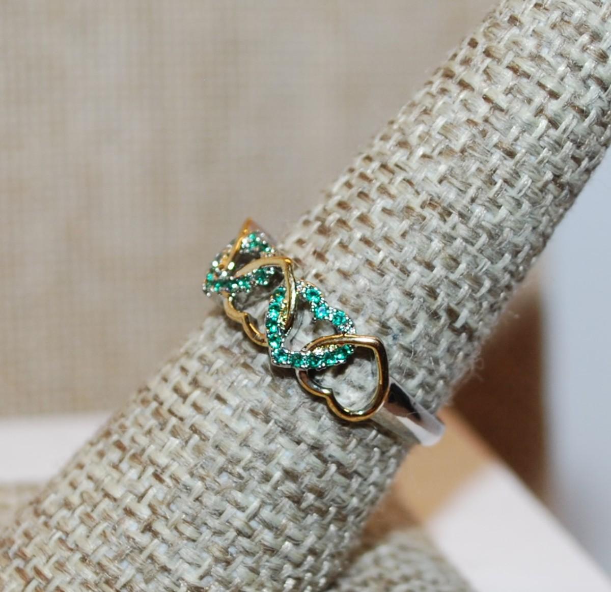 Size 8 Marked .925 Interlocking 2-Tone HEARTS Rings in GREEN Stones on a Silver Band (2.5g)