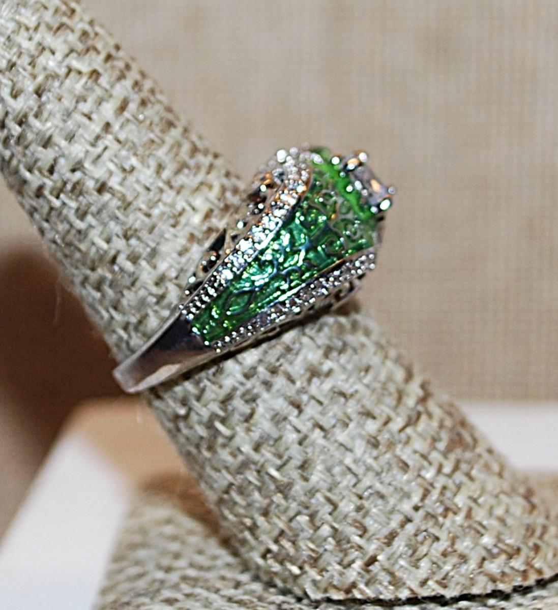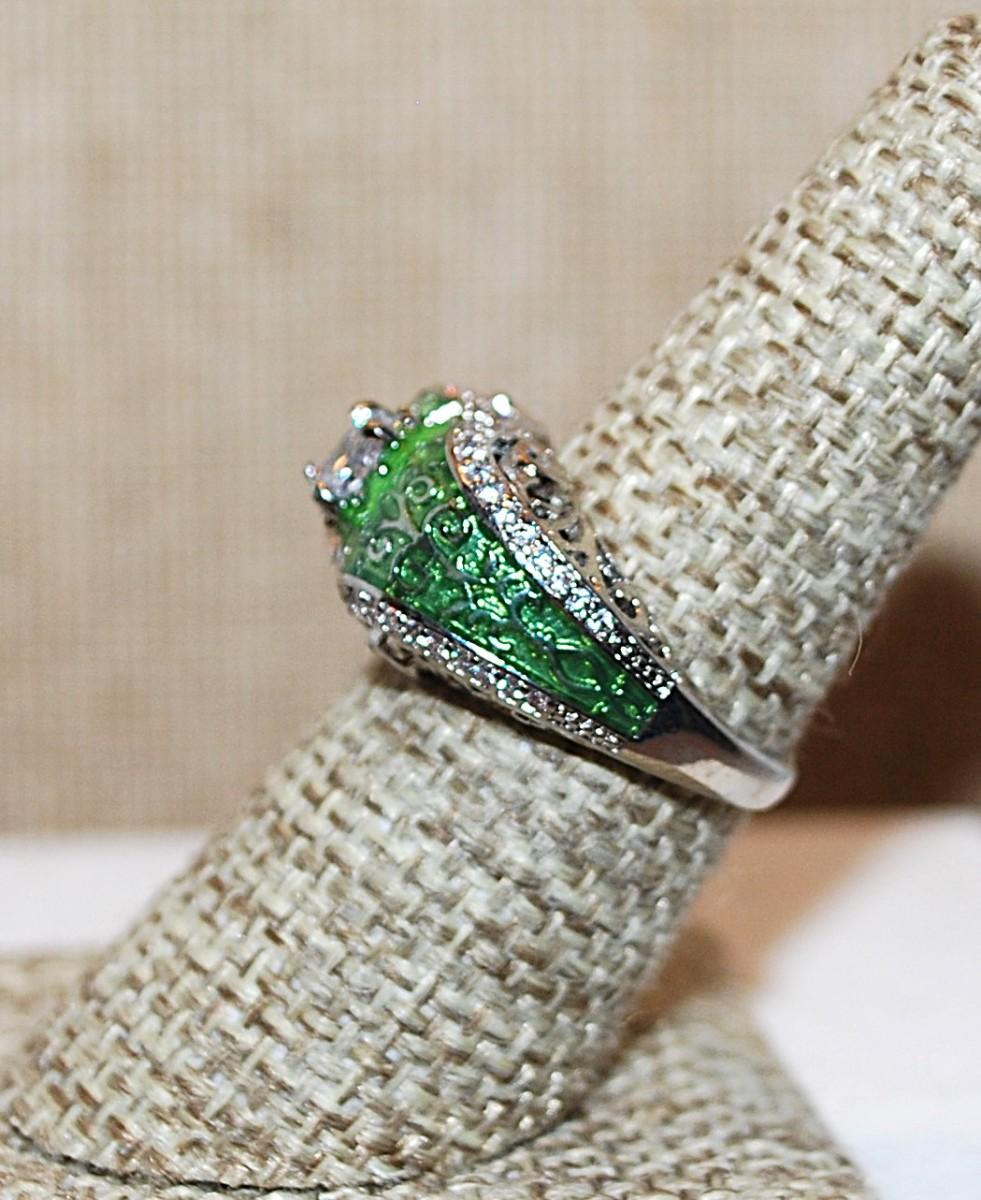 Size 8 Marked .925 "Puffy" LIME GREEN Party Ring with a Single Main Clear Round Stone on a Silver Band (5.8g)