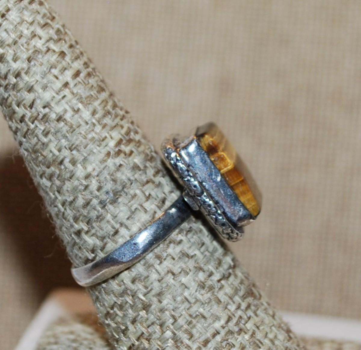 Size 8½ Marked .925 Square TIGER EYE GEMSTONE Ring on a Silver-Plated Band (4.7g)