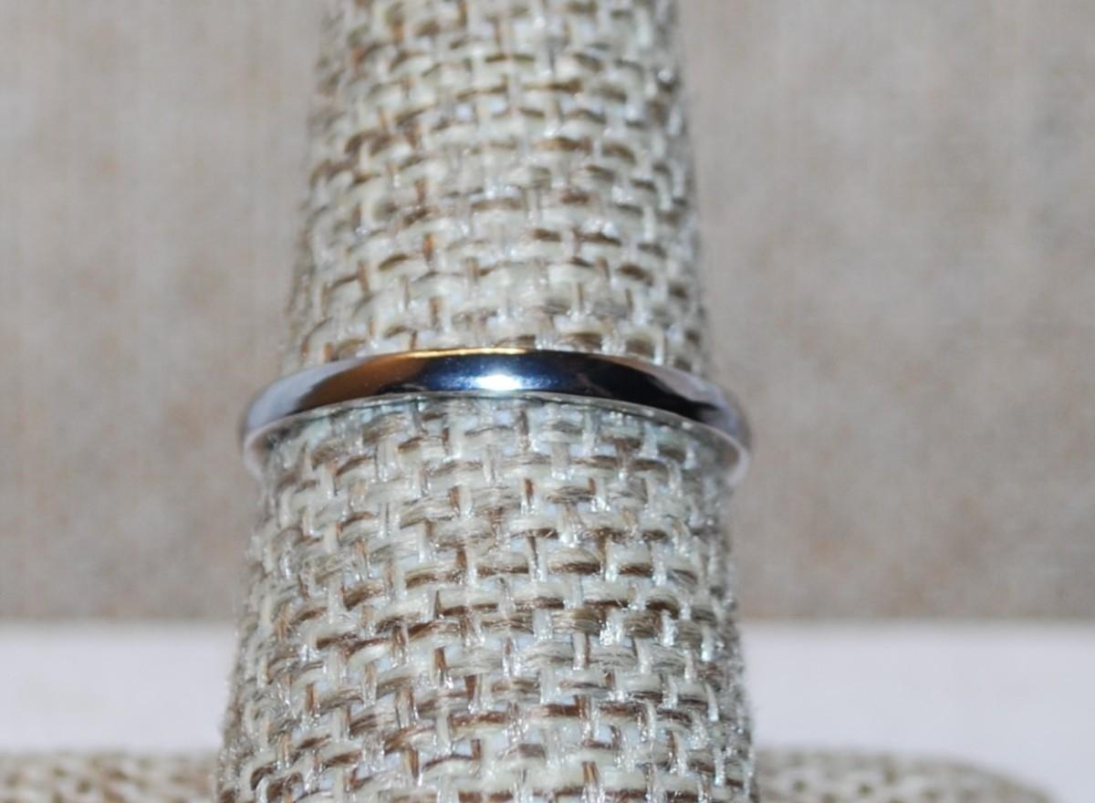 Size 8 Oval Opaque Blue Stone with Single Stone Side Accent on a Silver Tone Band (2.2g)
