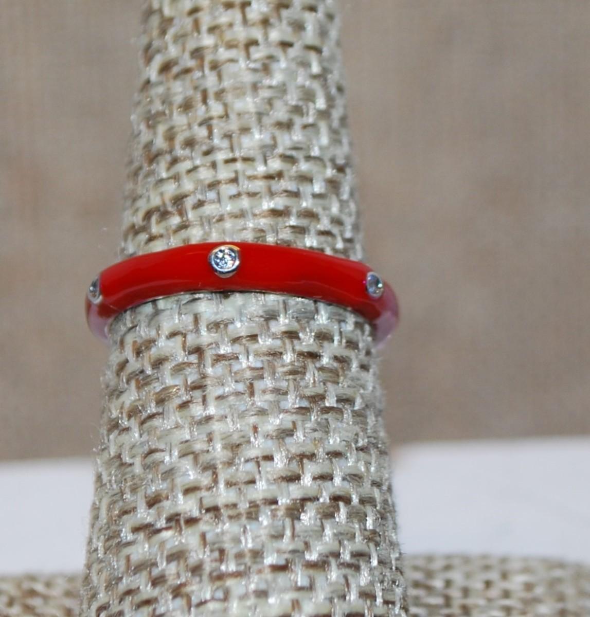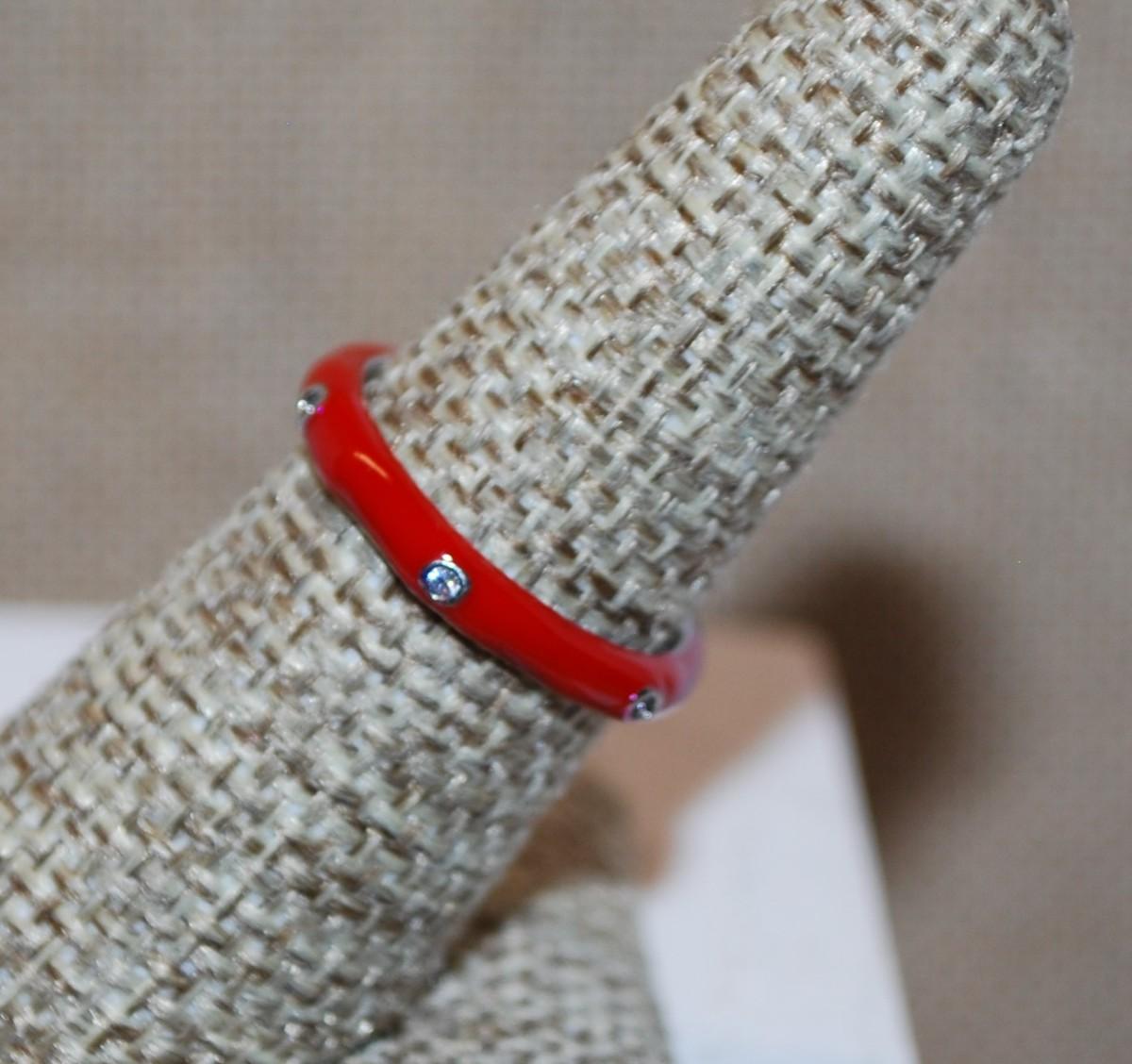 Size 8 RED Enamel Ring with 6 Rhinestones Around the Band (2.3)