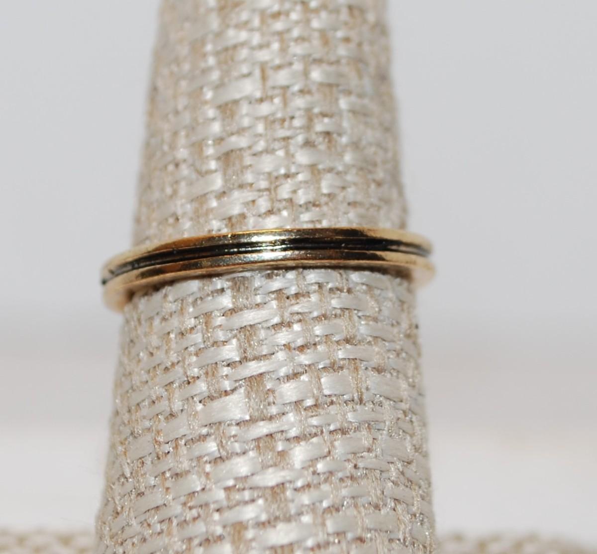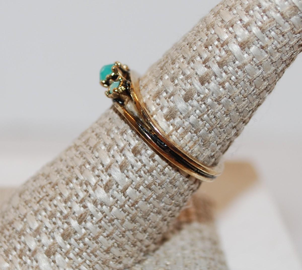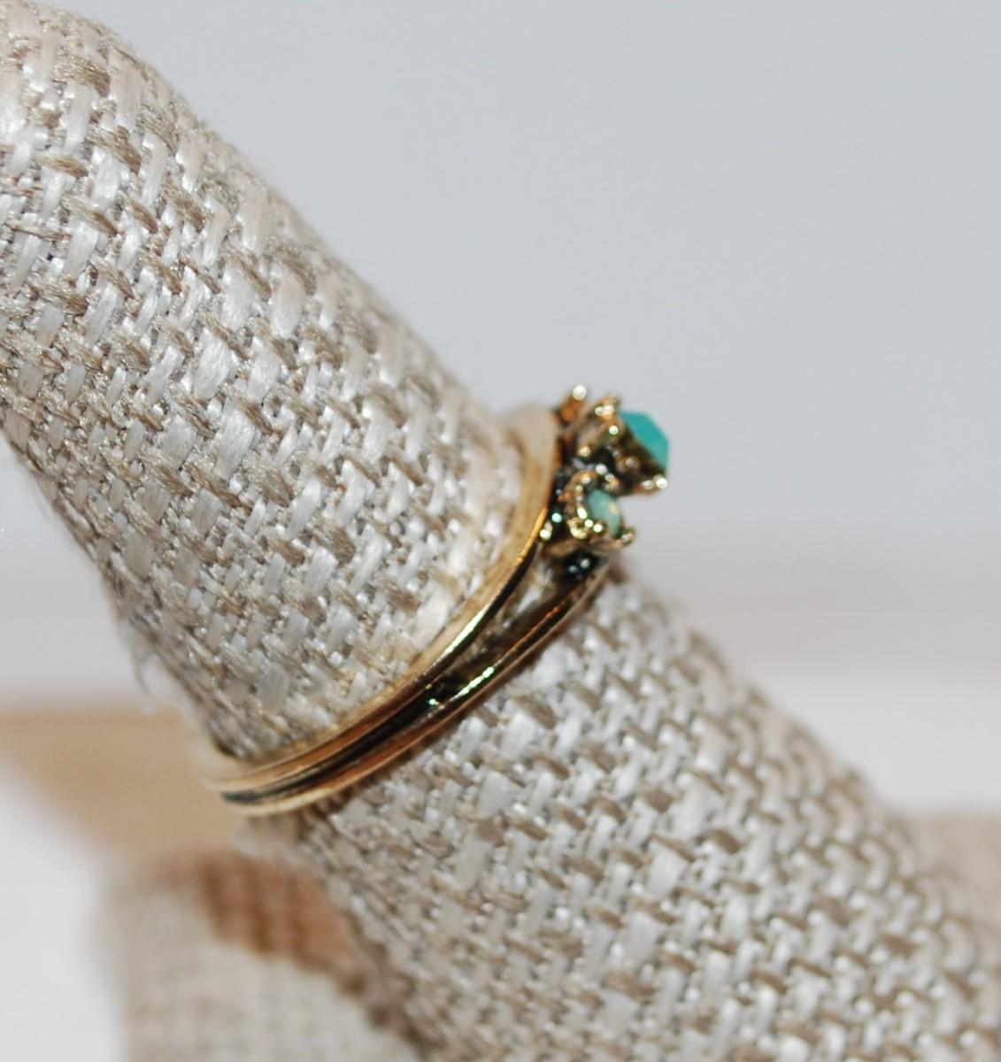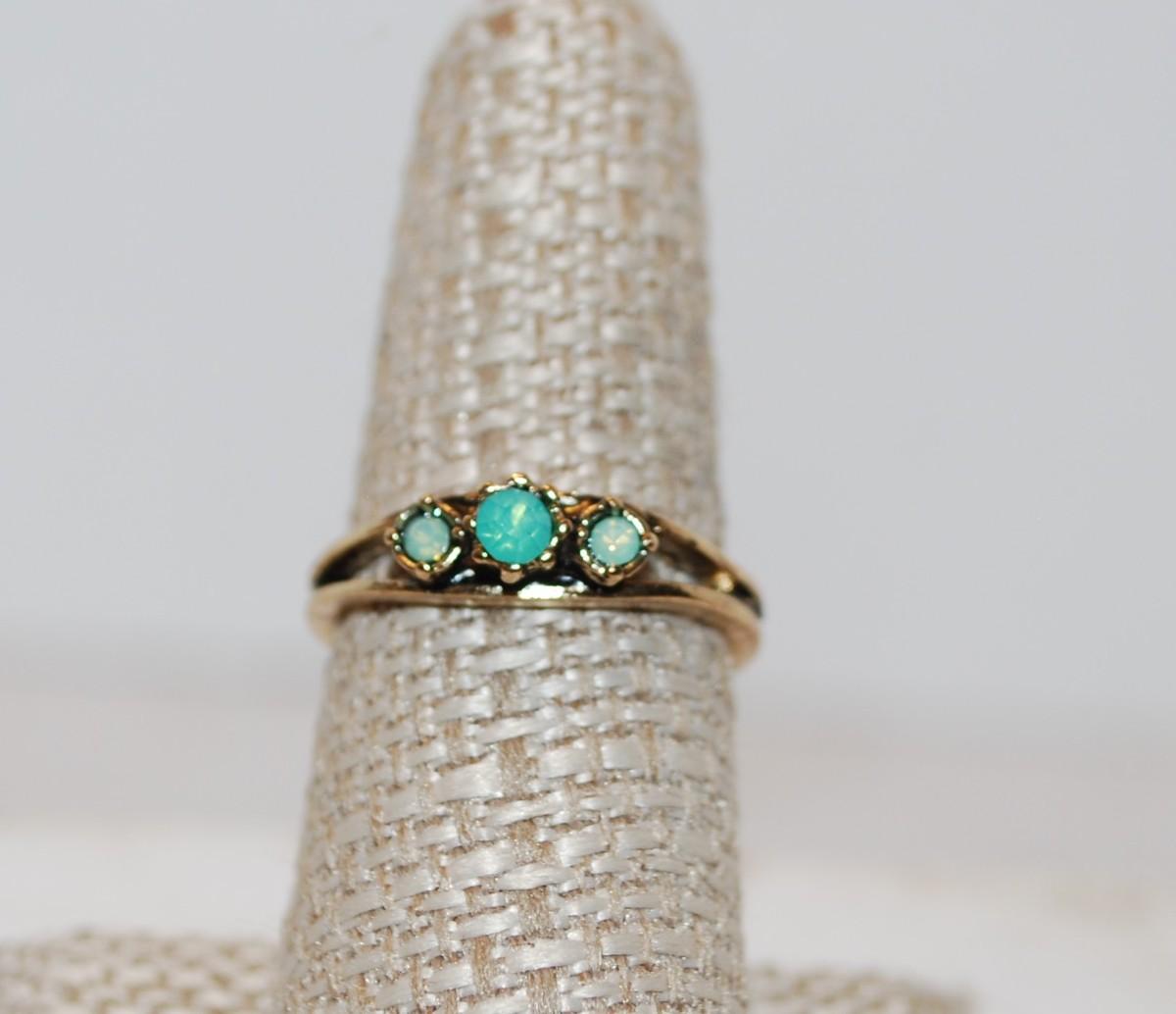 Size 8 Ring 3 Sea Foam Green Stones on a Grooved Gold Tone Band (2.3g)