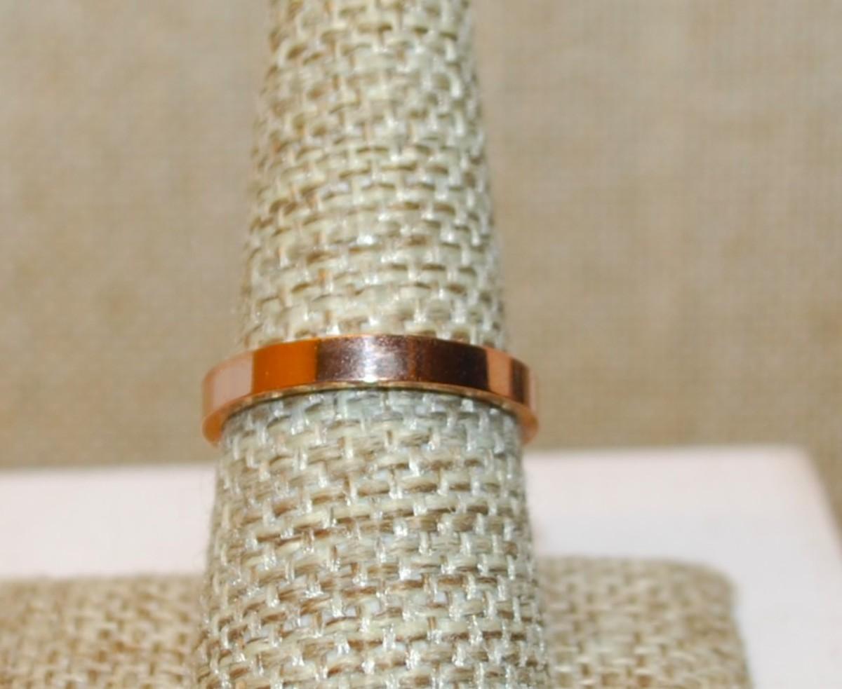 Size 8¼ Rose Gold "Love Forever" Ring with Loop & 7 Square Clear Stone Sides on a Rose Gold Band (2.4g)
