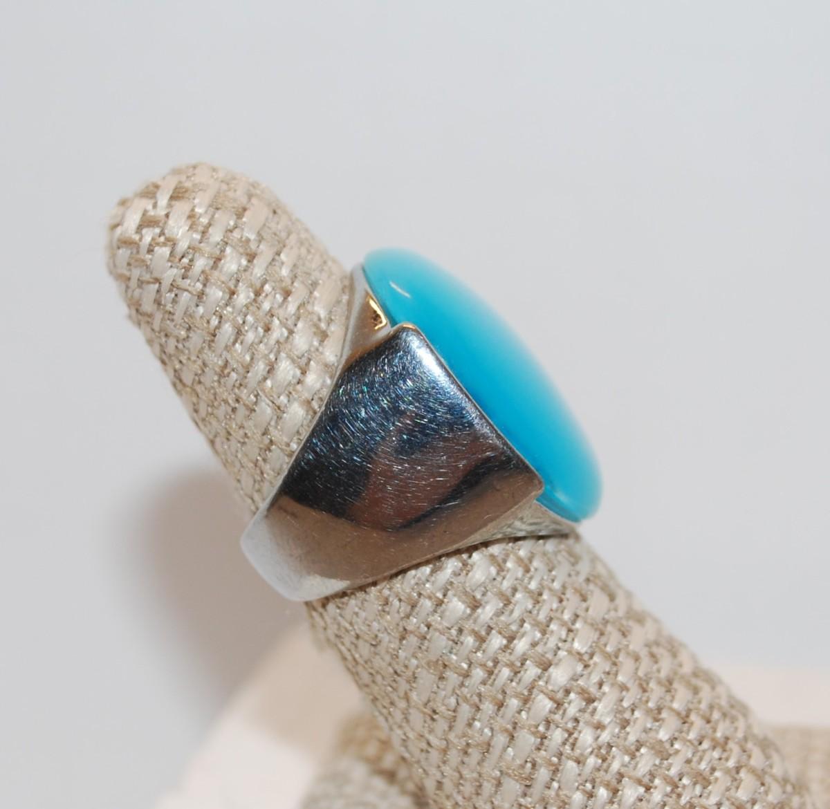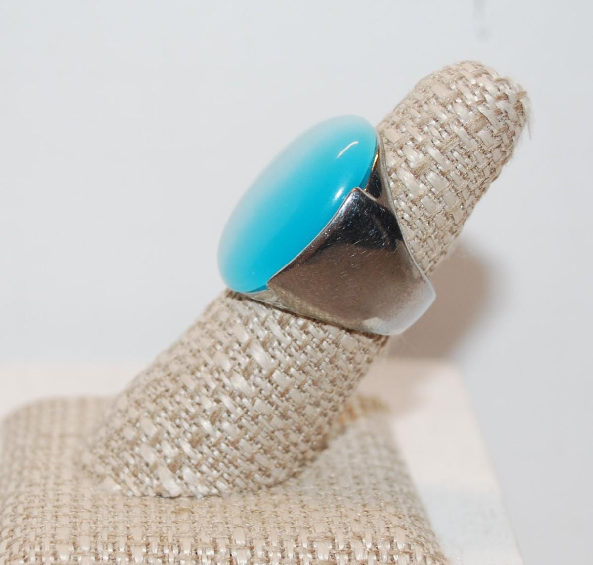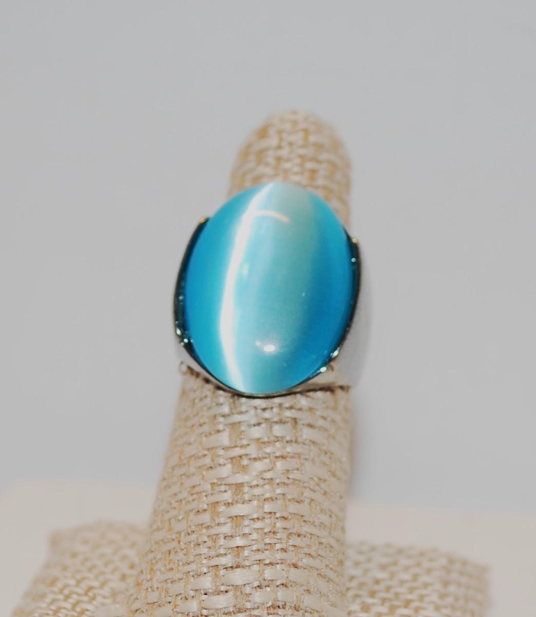 Size 8 Showy Ocean Blue Reflective Iridescent Large Oval Stone Ring (15.0g)