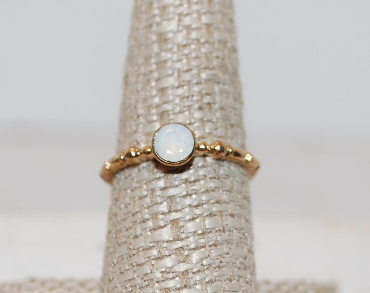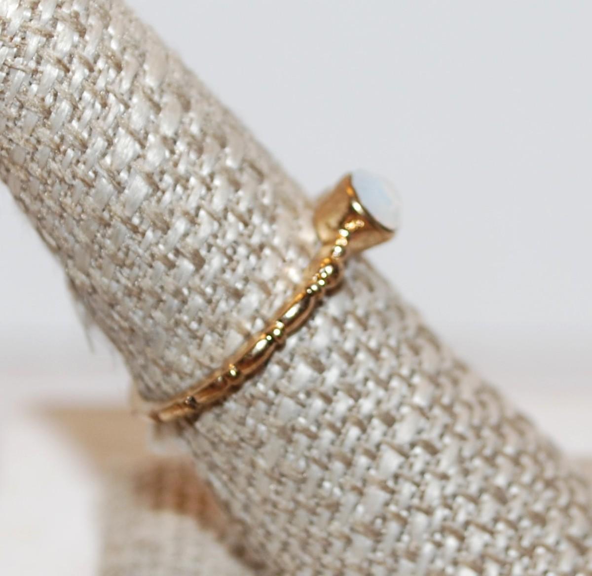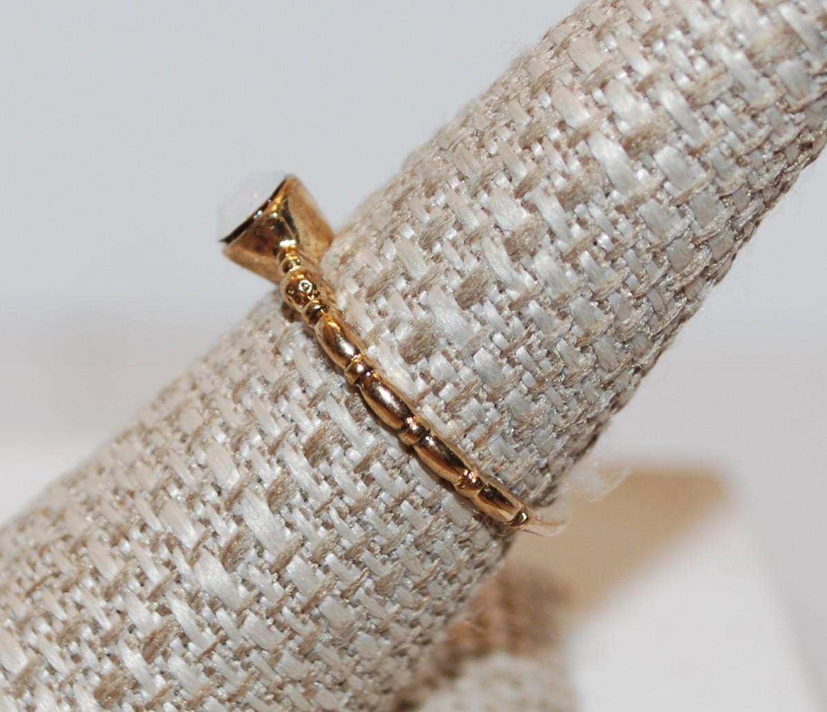 Size 8¼ Single Round Irridescent Moonstone Ring with Gold Tone Rope Style on Half Band (1.5g)