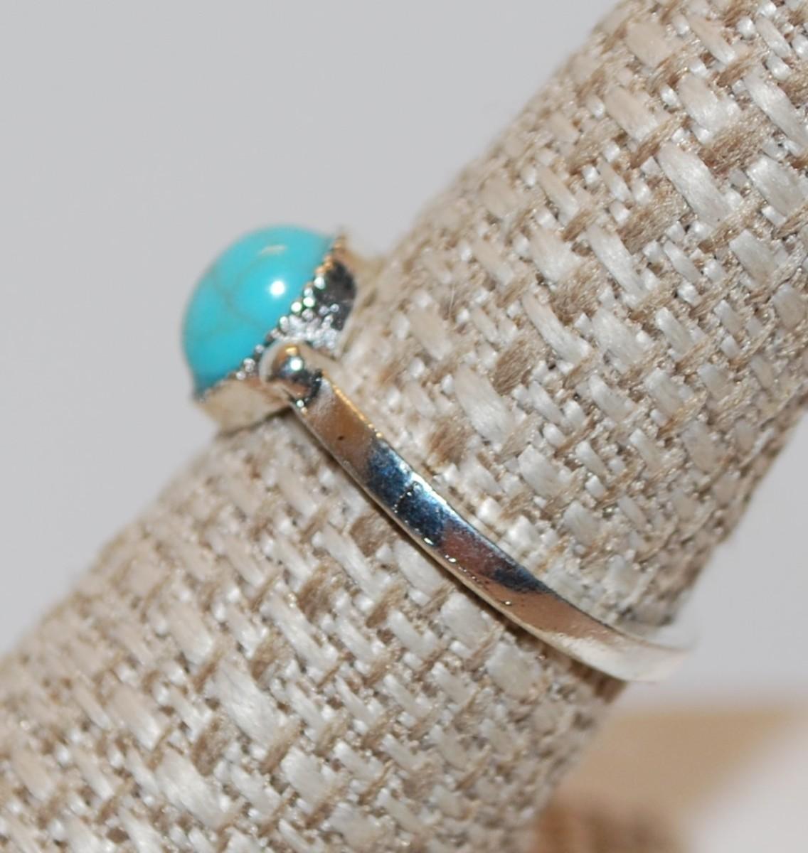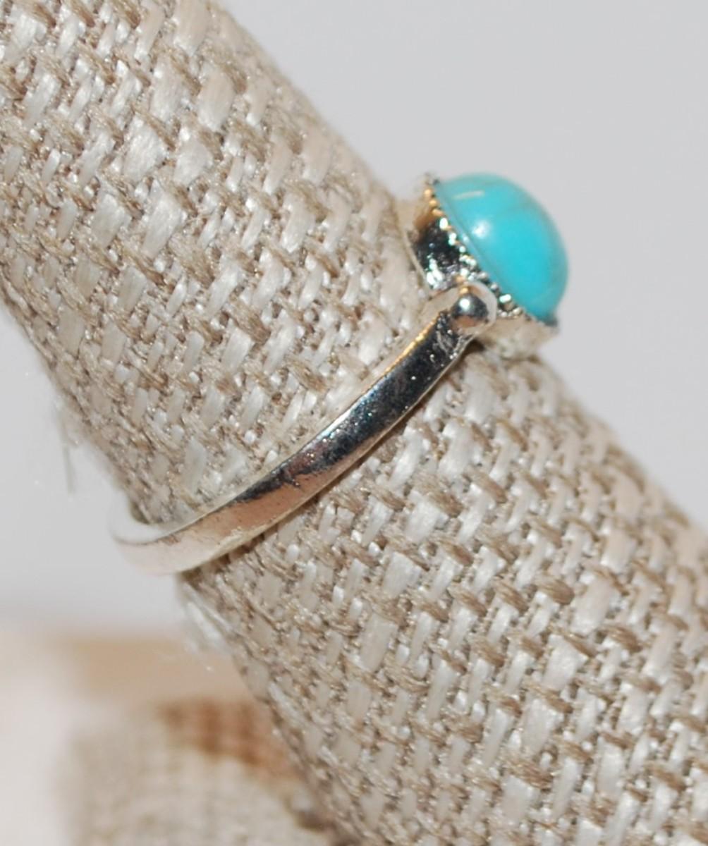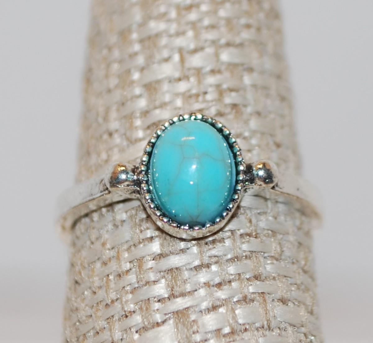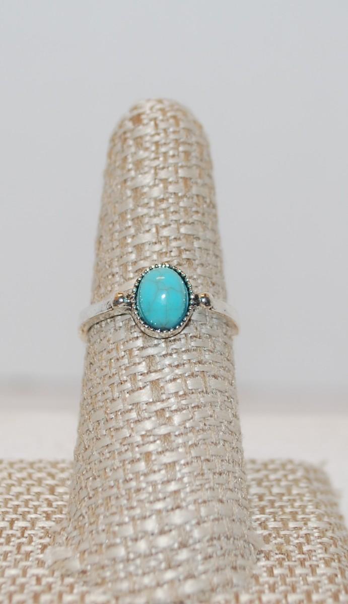 Size 8 Small Oval Turquoise-Styled Ring with Rope & 2 Spheres Surround (2.1g)