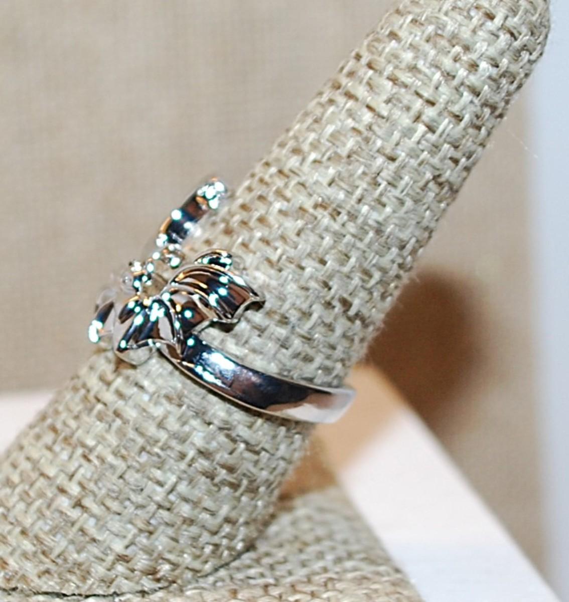 Size 8 Unusual BAT & Quarter MOON Ring on a No Stones Silver Tone Band (4.8g)