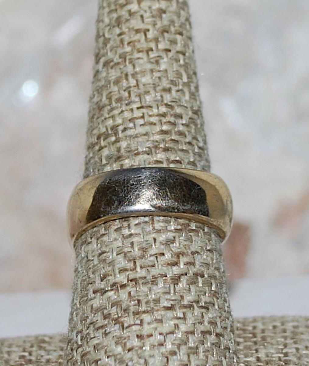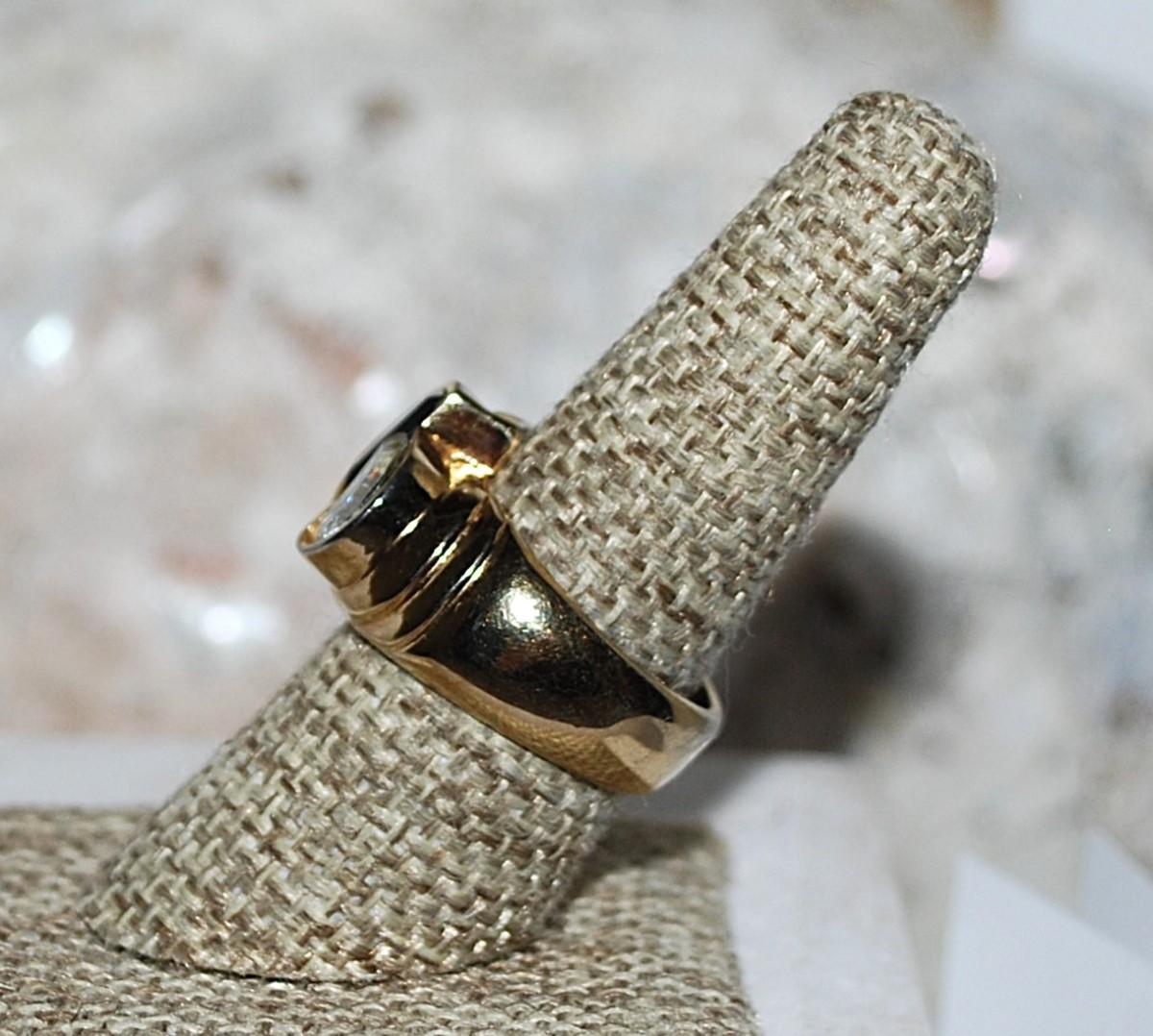 Size 8 Very Interesting "Split" Oval RING - Marked "18" -- with Black Enamel & Bright Clear Stone on a Solid Gold Tone Setting (9.2g)