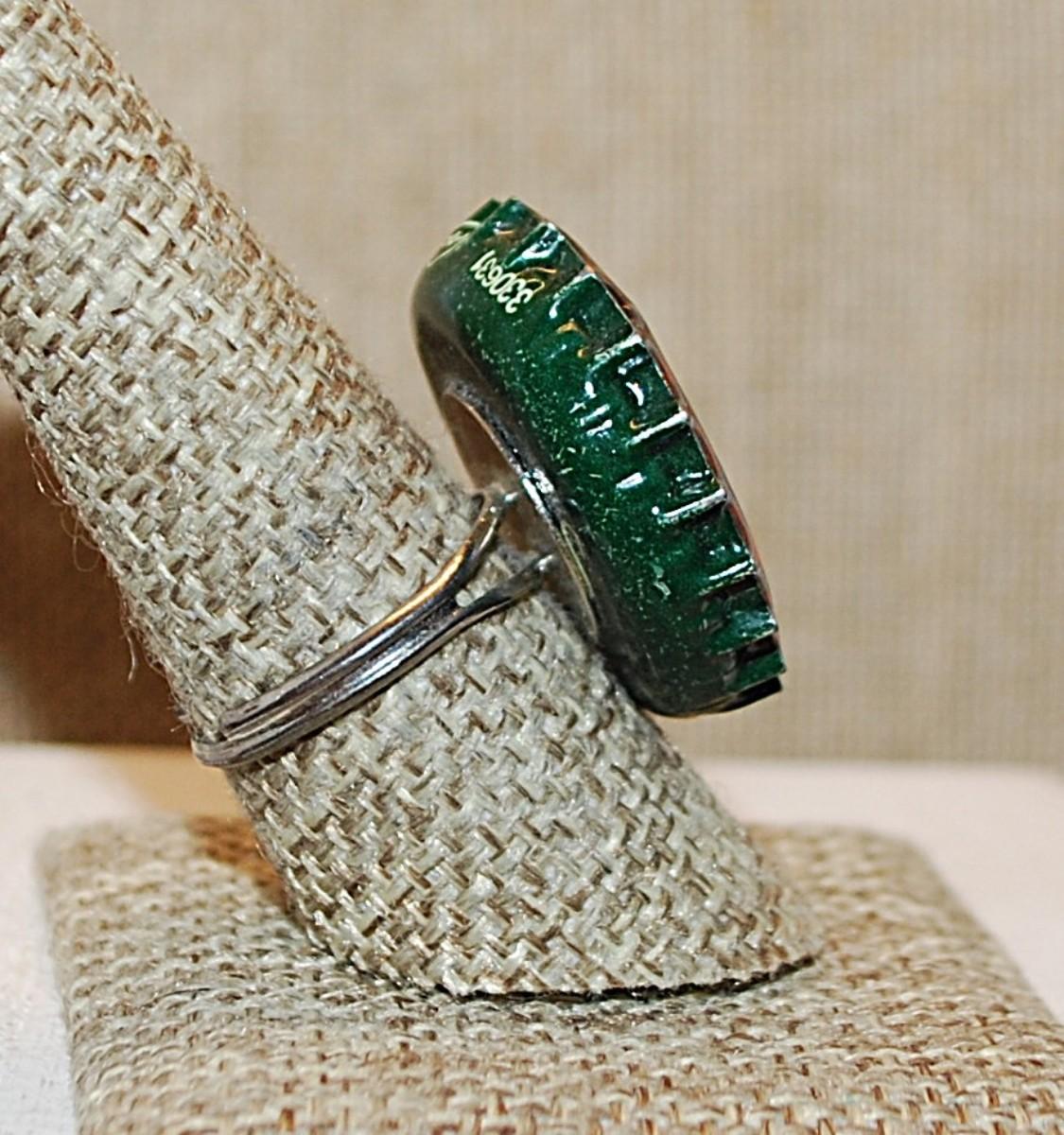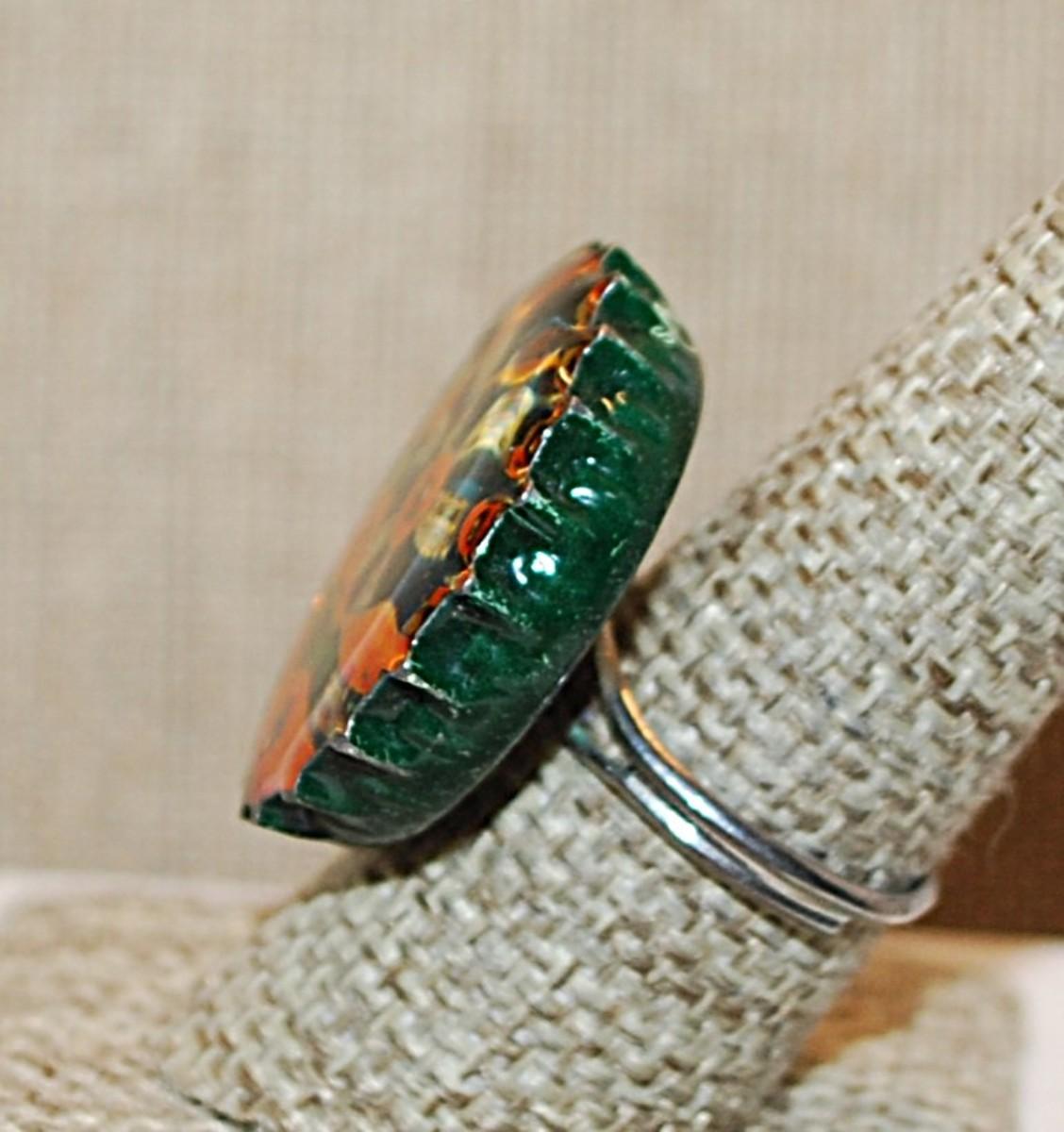 Size 8½ Very Unique "Soda Bottle Top" Ring with Colorful Clear Acrylic Top SNAKE on an OPEN Silver Tone Band (8.0g)