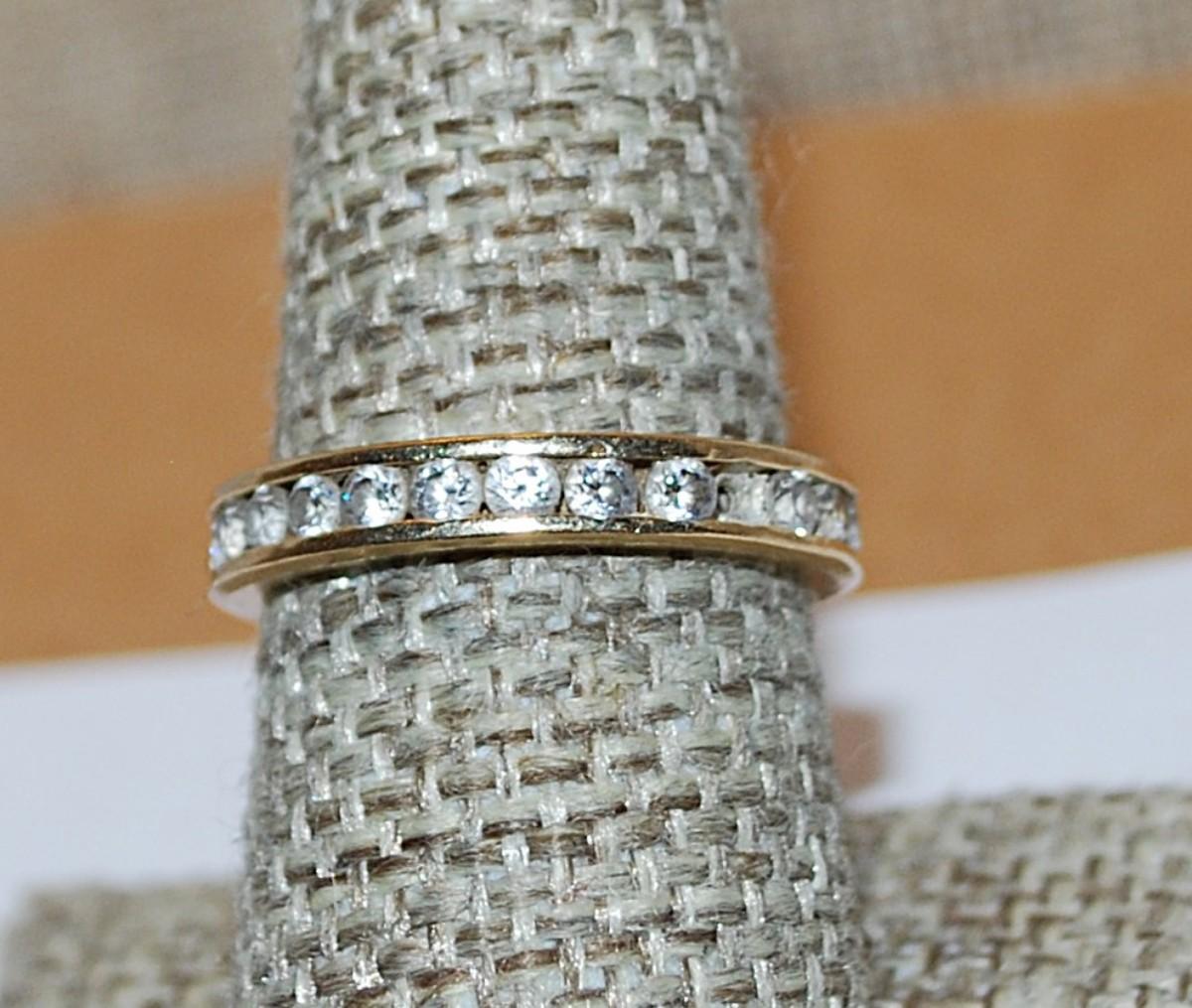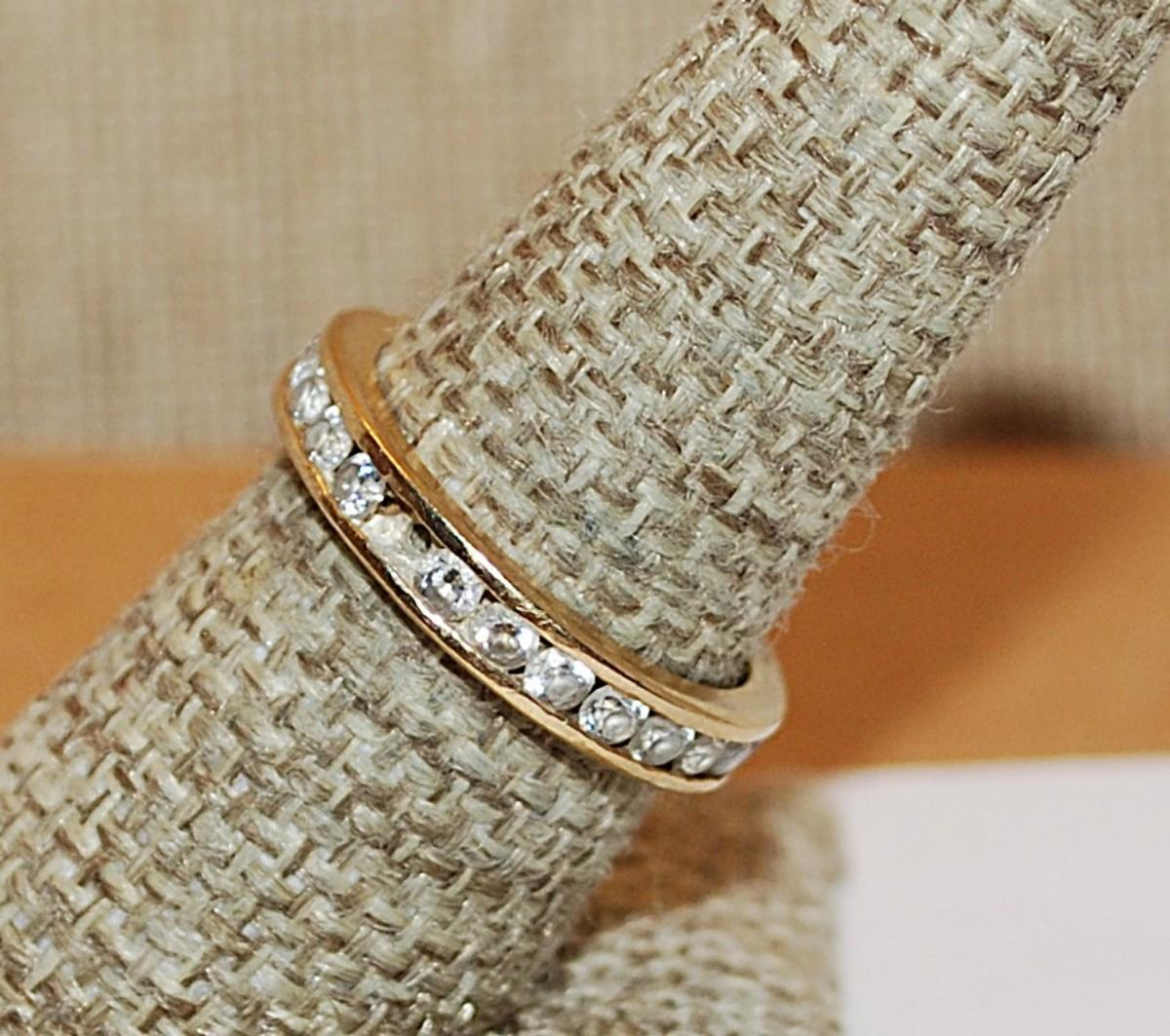 Size 8 Vintage Infinity Gold Colored Edge Clear Stone RING (4.1g)