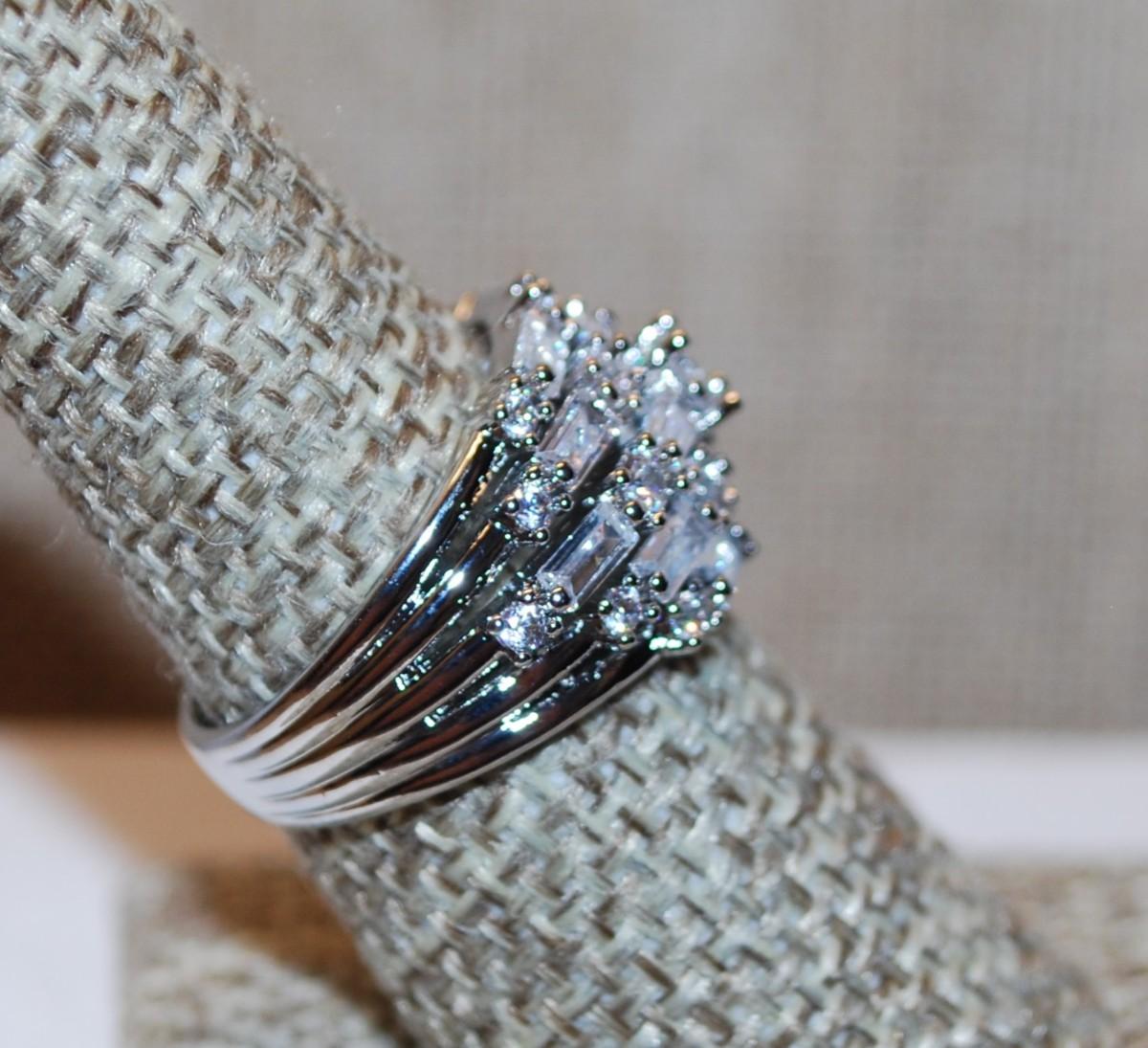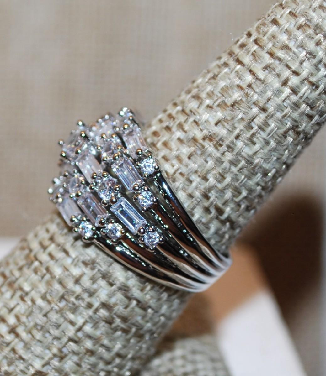Size 8 Wedding/Engagement Style Ring with 5 Rows of Clear Stone on a Silver Tone Band (6.2g)