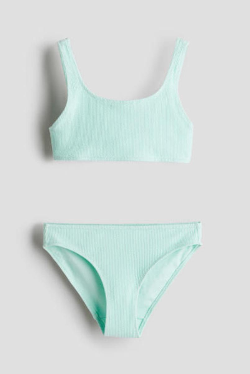 Size 8/10 - H&M Girls Textured 2-Piece Swimming Suit in Turquoise