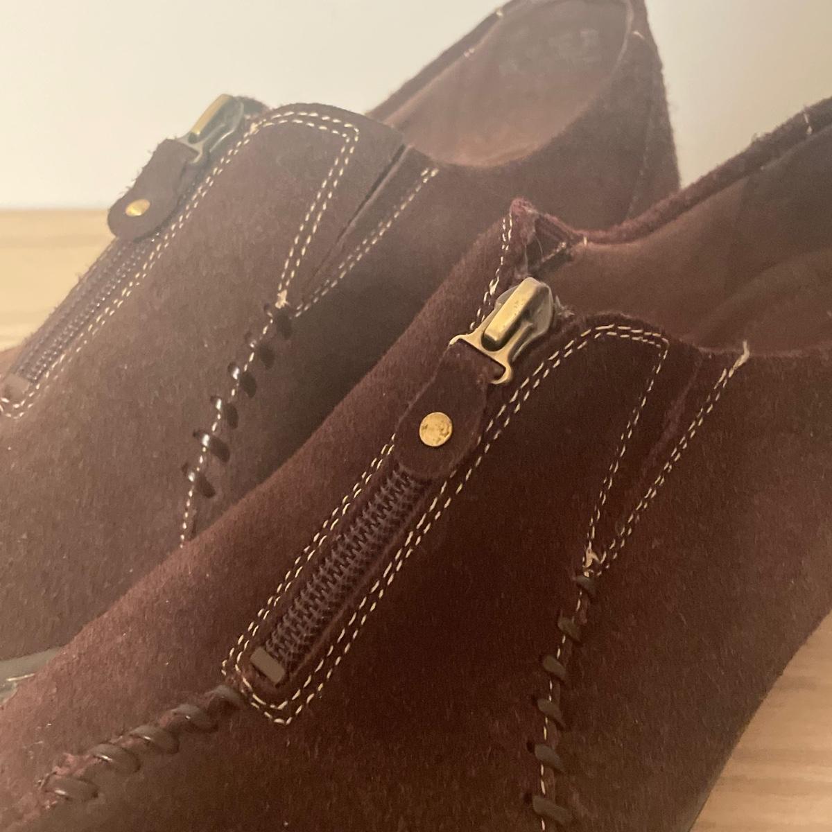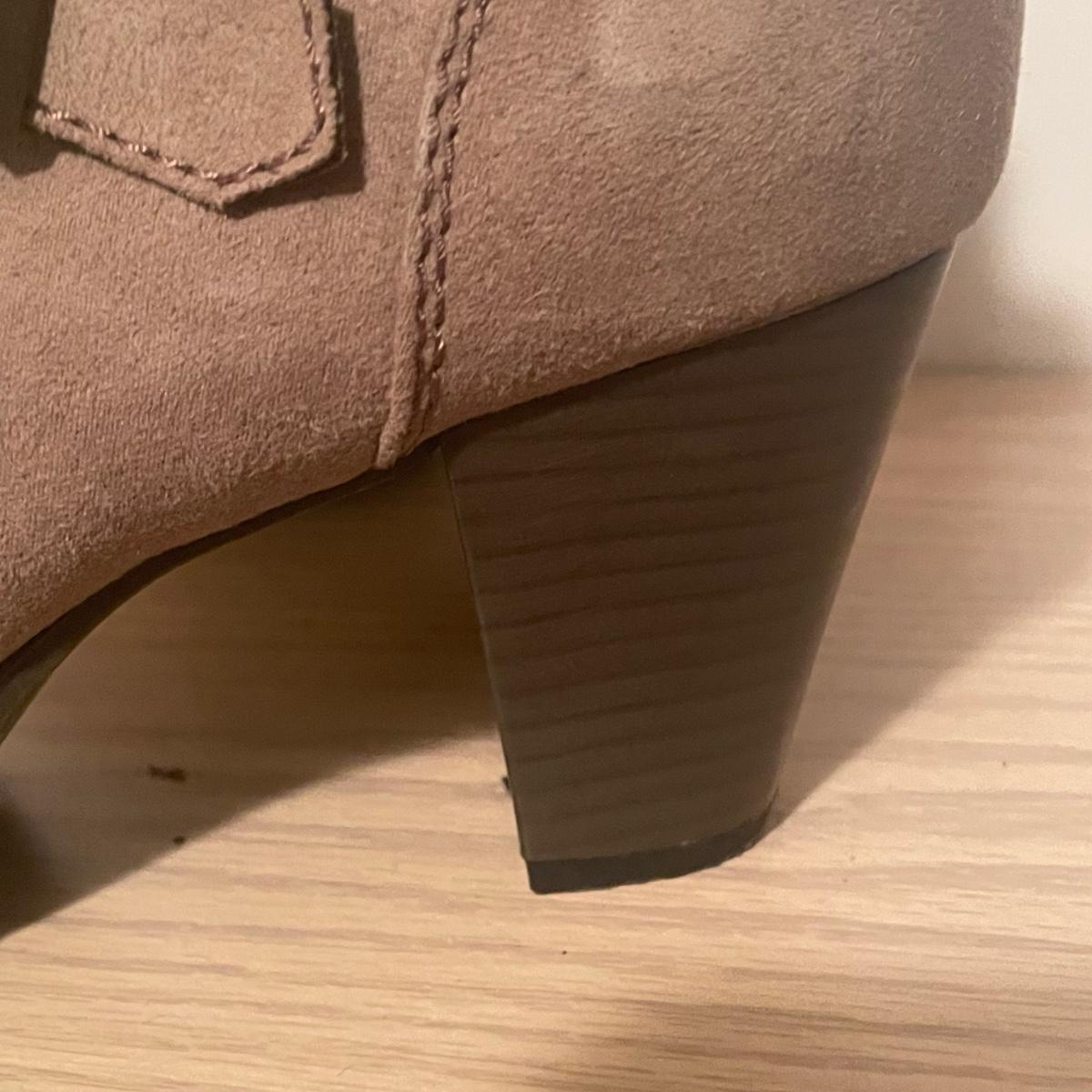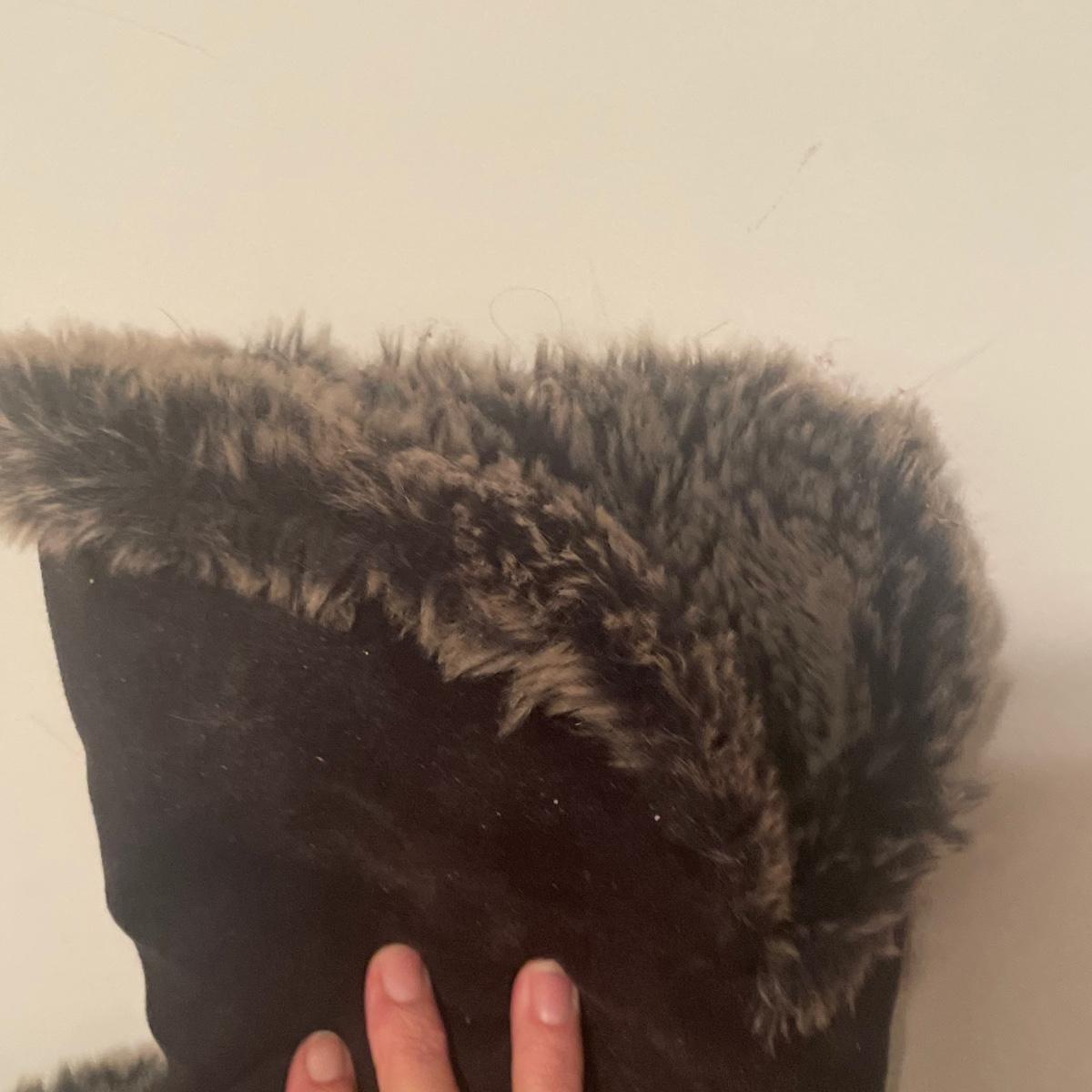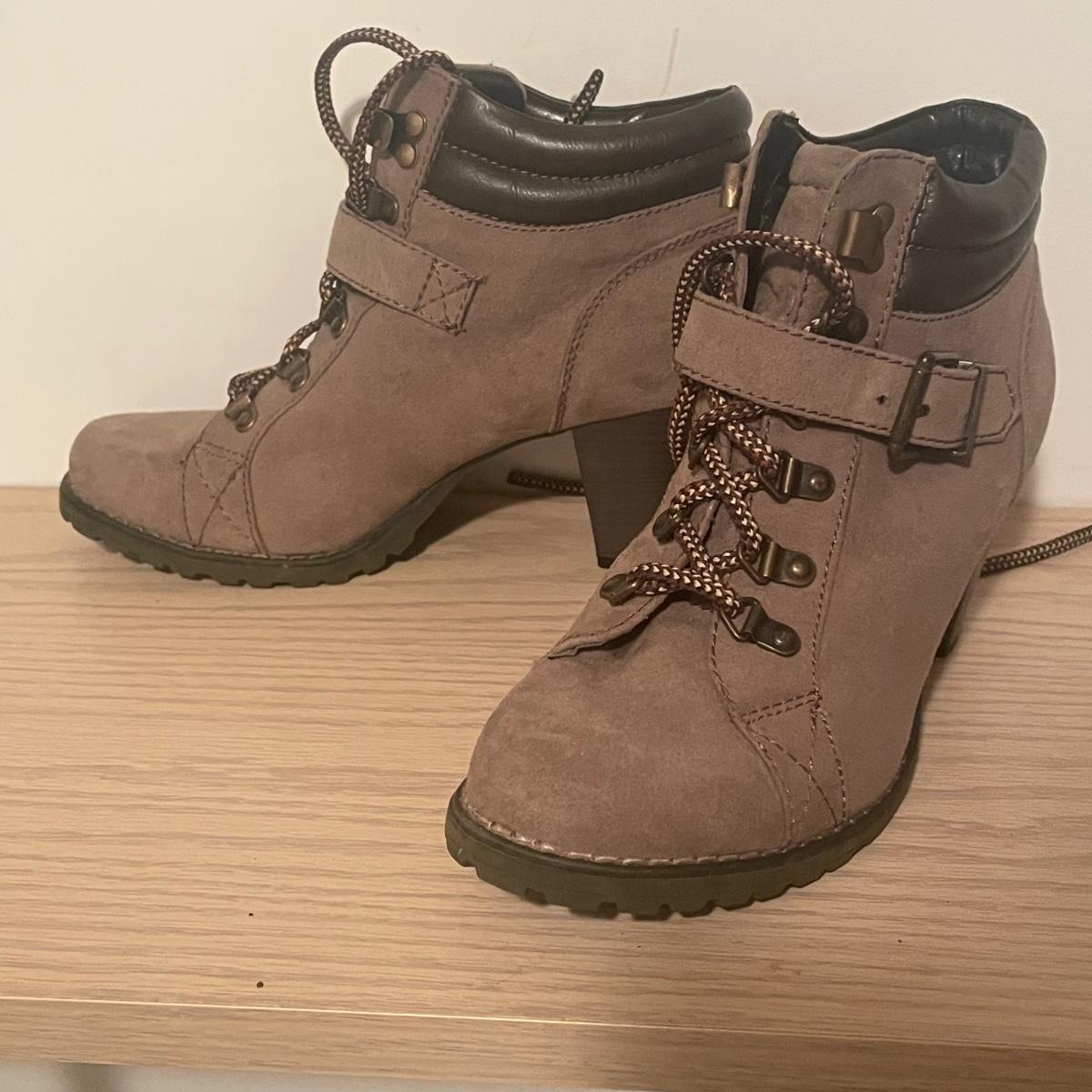 4 pairs of boots and 4 pairs of shoes (8 pairs total). Includes a pair of clog style Clarks shoes that look almost new. All pairs are in good condition. Sizes range from 8-9, with most being 8.5 (some pairs do not have sizes but appear to be 8/8.5.). The tallest boots are the black suede with a dark grey fur like lining and they are 19” tall.