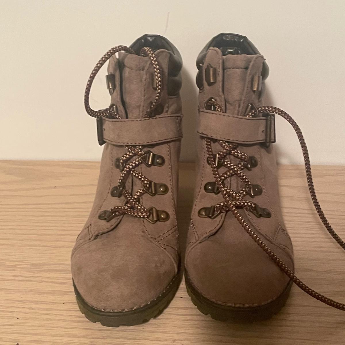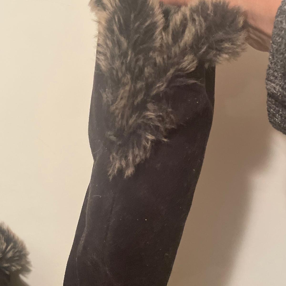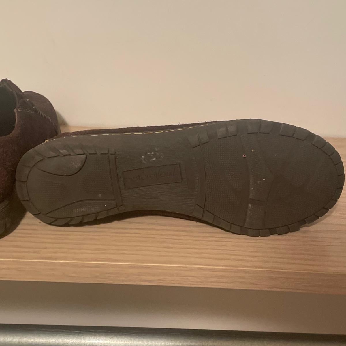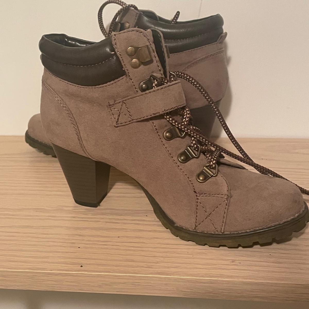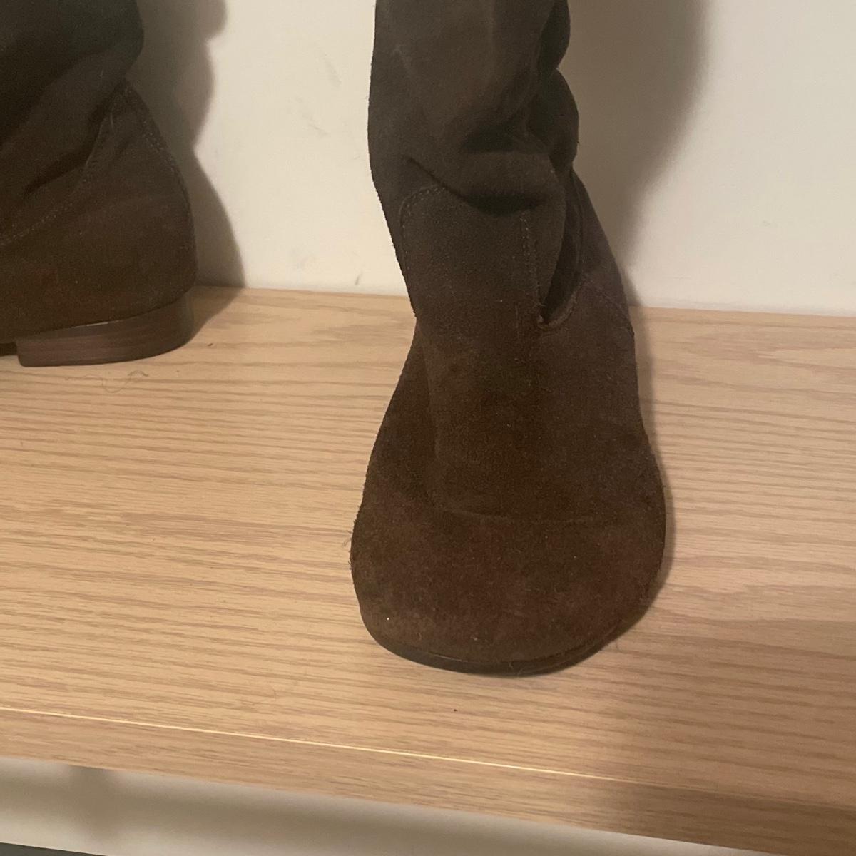 4 pairs of boots and 4 pairs of shoes (8 pairs total). Includes a pair of clog style Clarks shoes that look almost new. All pairs are in good condition. Sizes range from 8-9, with most being 8.5 (some pairs do not have sizes but appear to be 8/8.5.). The tallest boots are the black suede with a dark grey fur like lining and they are 19” tall.