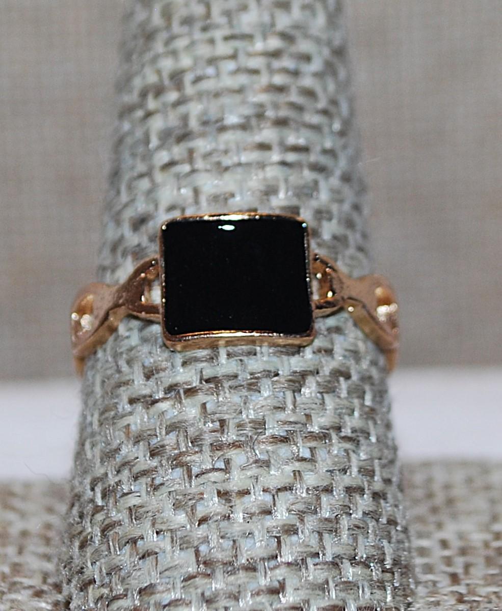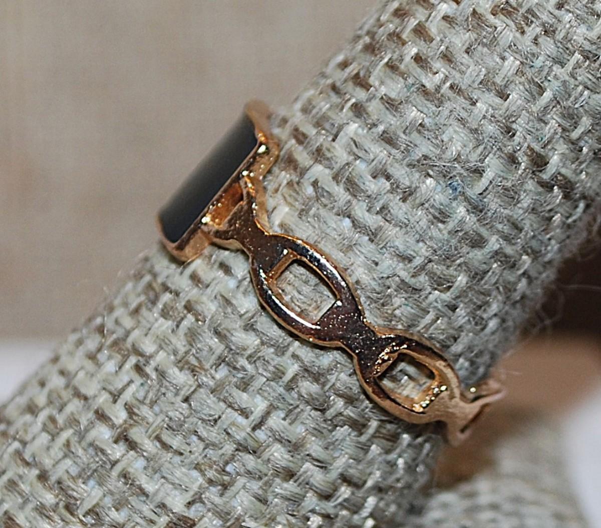 Size 9½ BLACK Square Enamel RING with Gold Tone Chain-Like Band (1.8g)