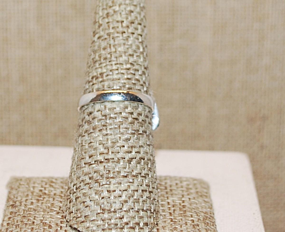 Size 9 BLUE Pear Shape Transparent Glass Rhinestone Ring with a FULL Loop Rim Setting on a Silver Tone Band (5.1g)
