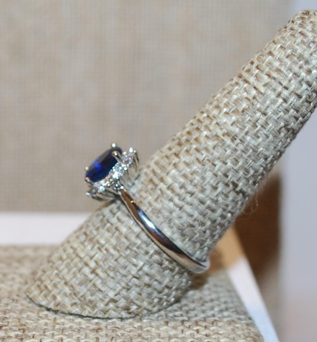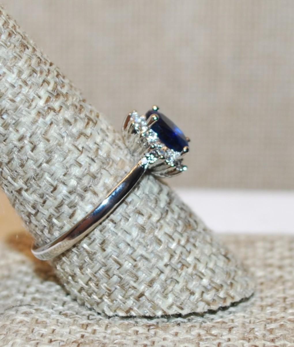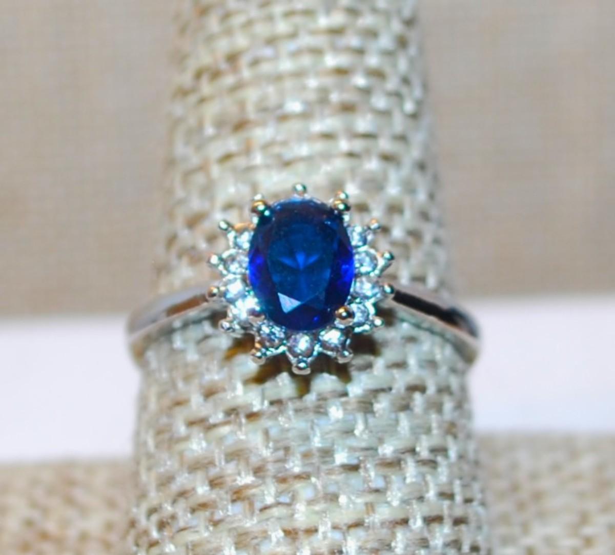 Size 9¼ Deep Blue Oval Stone Ring & Starburst Setting with a Silver Tone Band (3.0g)