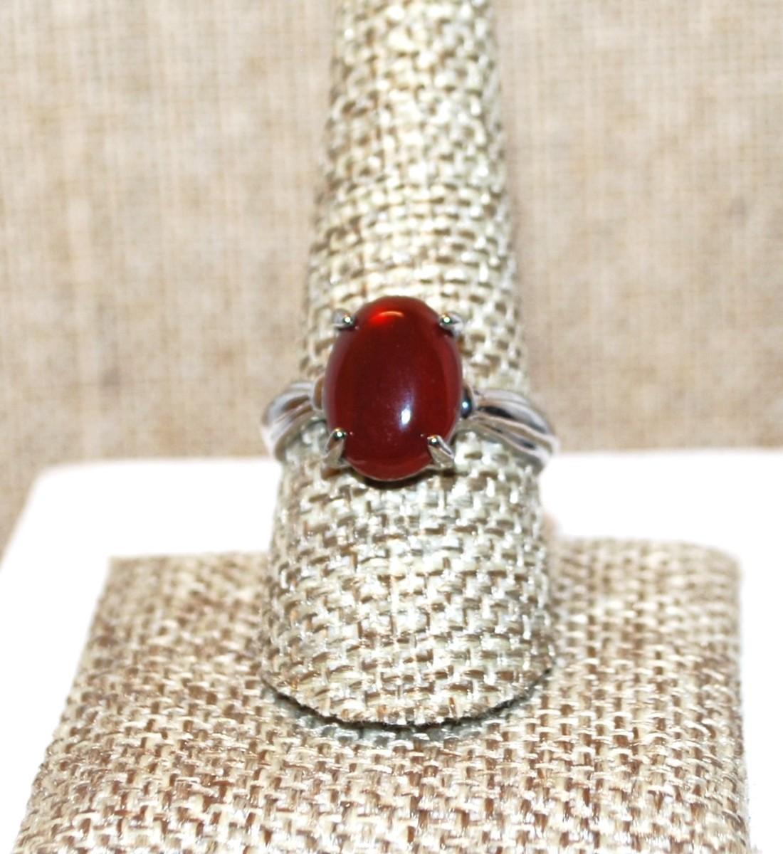 Size 9 Deep Red Oval Carnelian Stone Ring on a Silver Tone Band (4.1g)