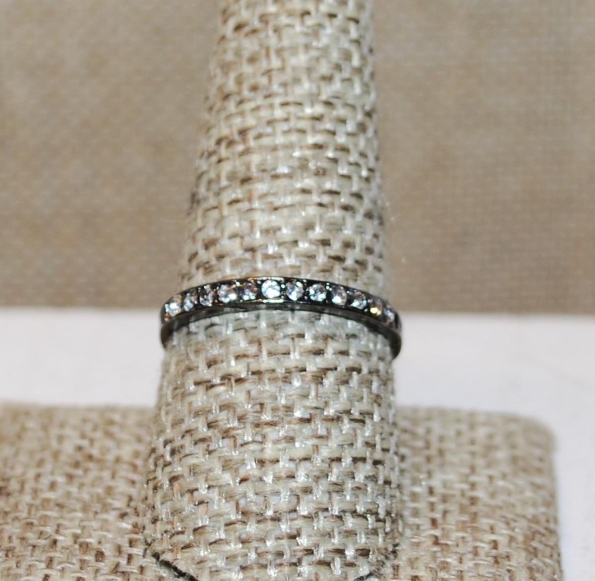 Size 9½ Delicate Black Banded Half Infinity Style Ring with Single Row of Clear Stones (1.2g)