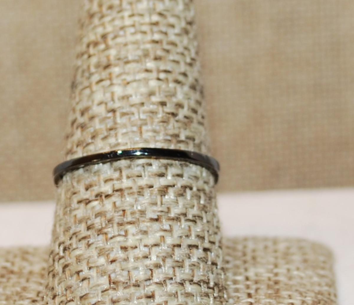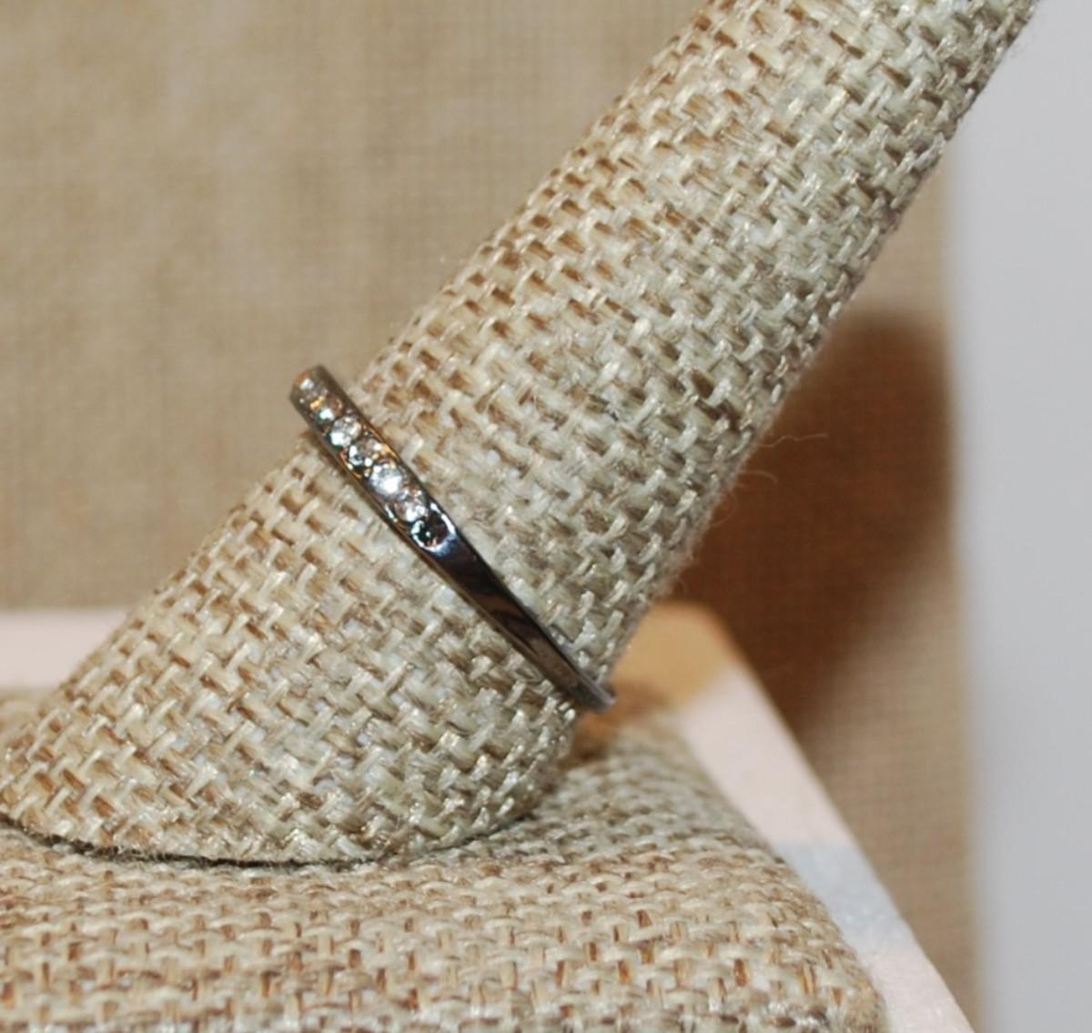 Size 9½ Delicate Black Banded Half Infinity Style Ring with Single Row of Clear Stones (1.2g)