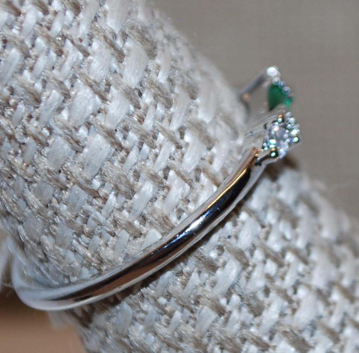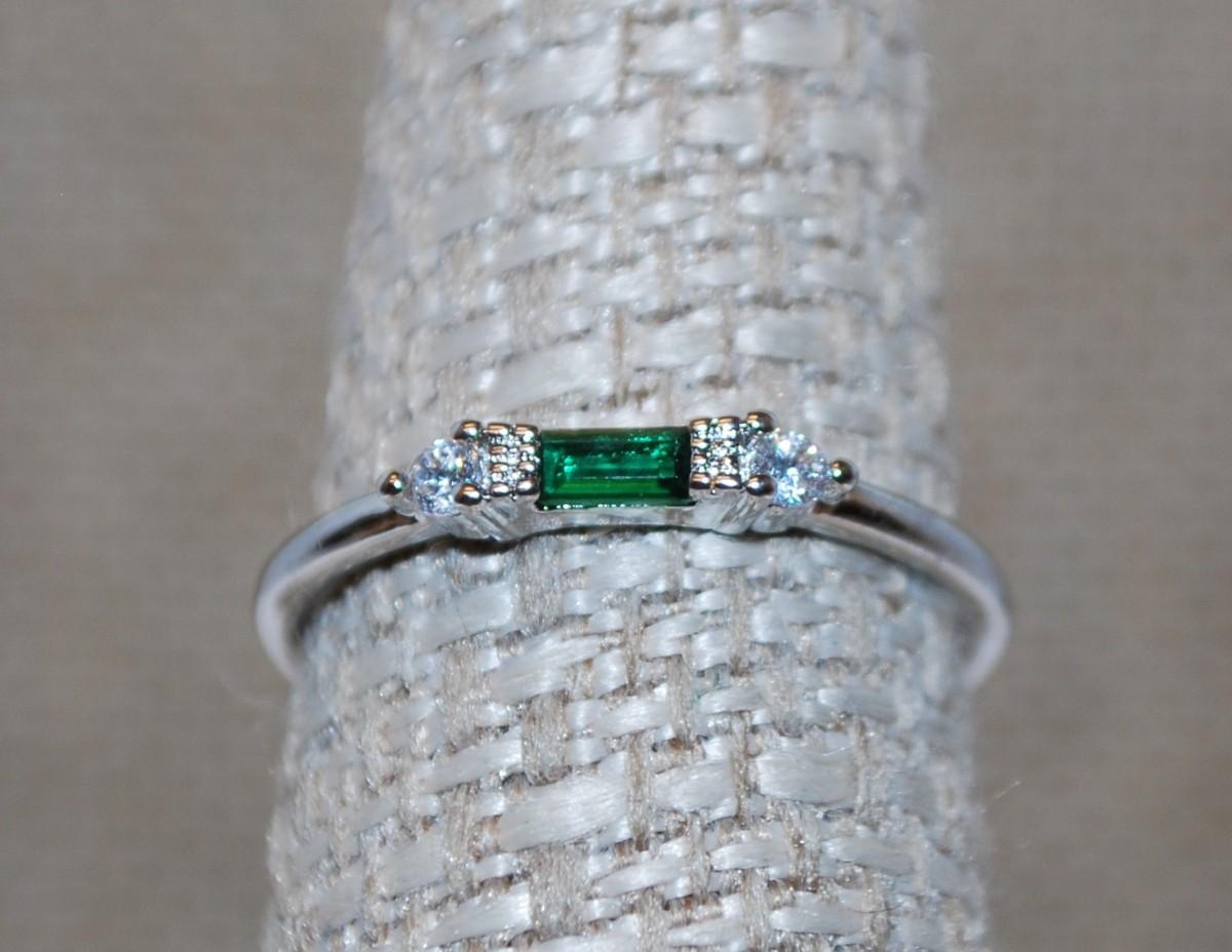 Size 9½ Delicate Green Rectangle Stone Marked .925 Ring with Small Side Accents on a Silver Band (1.1g)