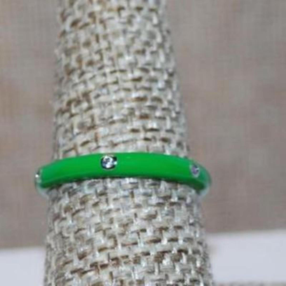 Size 9 Delicate LIME GREEN Enamel Ring with 6 Accent Clear Stones on a Silver Tone Band (2.2g)- STACK ALL COLORS for a REAL IMPACT
