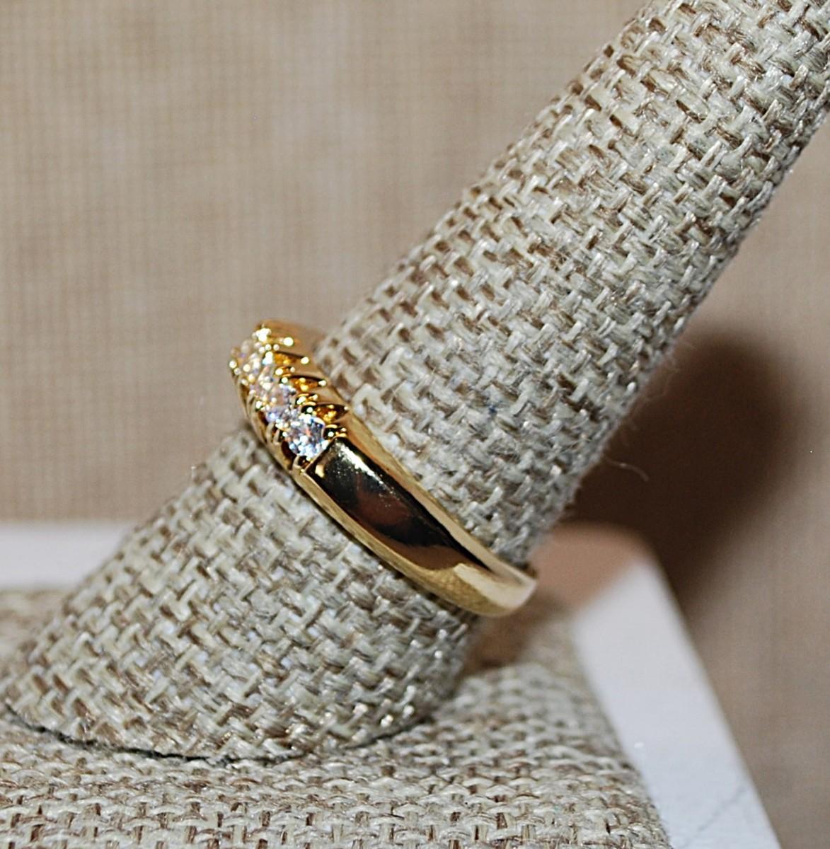 Size 9 Half Infinity Ring with Center Row of 8 Clear Stones on a "Grooved" Gold Tone Setting (5.3g)